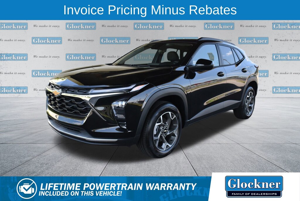 Glockner Chevrolet is proud to offer this terrific 2025 Chevrolet Trax in Mosaic Black Metallic. This 2025 Chevrolet Trax has passed our comprehensive inspection and comes with the following features; Preferred Equipment Group 1LT, 2-Way Adjustable Front Head Restraints, 3 Years SiriusXM, 3.50 Final Drive Axle Ratio, 4-Way Manual Front Passenger Seat Adjuster, 4-Wheel Disc Brakes, 6 Speakers, 6-Speaker Audio System Feature, 6-Way Manual Driver Seat Adjuster, ABS brakes, Air Conditioning, Alloy wheels, AM/FM radio: SiriusXM, Auto High-beam Headlights, Automatic temperature control, Brake assist, Bumpers: body-color, Cloth/Evotex Seat Trim, Compass, Delay-off headlights, Driver door bin, Driver vanity mirror, Dual front impact airbags, Dual front side impact airbags, Electronic Stability Control, Emergency communication system: OnStar One Essentials, Exterior Parking Camera Rear, Front & Rear All-Weather Floor Liners (LPO), Front anti-roll bar, Front Bucket Seats, Front Center Armrest, Front reading lights, Front wheel independent suspension, Fully automatic headlights, Illuminated entry, Low tire pressure warning, Occupant sensing airbag, Outside temperature display, Overhead airbag, Overhead console, Panic alarm, Passenger door bin, Passenger vanity mirror, Power door mirrors, Power steering, Power windows, Premium audio system: Chevrolet Infotainment 3, Radio data system, Radio: AM/FM Stereo Audio System, Rear window defroster, Rear window wiper, Remote keyless entry, Security system, SiriusXM Trial Subscription, Speed control, Split folding rear seat, Spoiler, Steering wheel mounted audio controls, Tachometer, Telescoping steering wheel, Tilt steering wheel, Traction control, Trip computer, Variably intermittent wipers, and Wheels: 17 Gray-Painted Machined Aluminum.Recent Arrival!Awards:* Car and Driver 10 BestCar and Driver, January 2017.