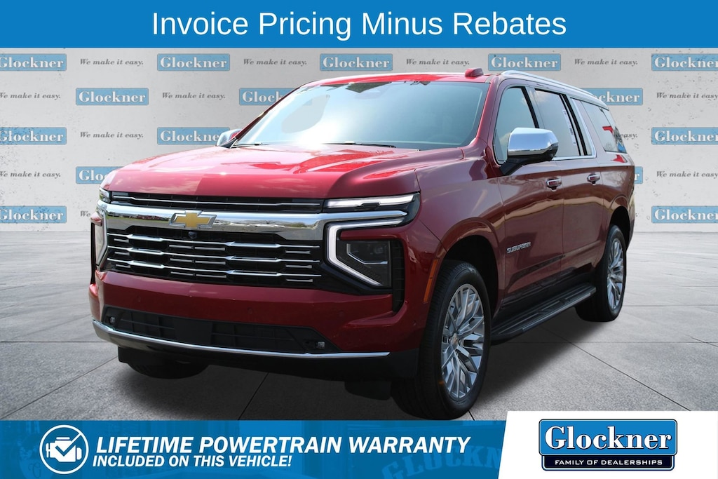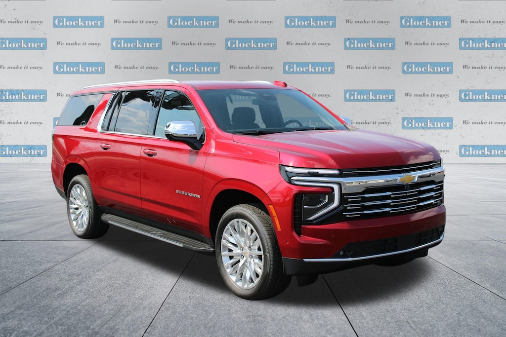 Glockner Chevrolet is proud to offer this handsome 2026 Chevrolet Suburban in Radiant Red Tintcoat. This 2026 Chevrolet Suburban has passed our comprehensive inspection and comes with the following features; Premium Liner Protection Package (3rd Row All-Weather Floor Liners, All-Weather Cargo Mat, and First and Second Rows Premium Floor Liners), Suburban Premier, 4D Sport Utility, EcoTec3 5.3L V8, 4WD, Radiant Red Tintcoat, 10 Speakers, 20 x 9 Polished Aluminum Wheels, 3 Years SiriusXM, 3.23 Rear Axle Ratio, 3rd Row 60/40 Power-Folding Split-Bench, 3rd row seats: split-bench, 4-Way Power Driver Lumbar Seat Adjuster, 4-Way Power Front Passenger Lumbar Seat Adjuster, 4-Wheel Disc Brakes, 8-Way Power Driver Seat Adjuster, 8-Way Power Front Passenger Seat Adjuster, ABS brakes, Adaptive suspension, Air Conditioning, Alloy wheels, AM/FM radio: SiriusXM with 360L, Apple CarPlay/Android Auto, Auto High-beam Headlights, Auto-dimming door mirrors, Auto-Dimming Inside Rear-View Mirror, Auto-dimming Rear-View mirror, Auto-leveling suspension, Automatic temperature control, Bose 10-Speaker Surround with CenterPoint, Brake assist, Bright Front and Rear Door Sill Plates, Bumpers: body-color, Chrome Door Handles with Body-Color Strip, Chrome Mirror Caps, Compass, Delay-off headlights, Driver door bin, Driver vanity mirror, Dual Exhaust System, Dual front impact airbags, Dual front side impact airbags, Electronic Stability Control, Emergency communication system: OnStar Services capable, Exterior Parking Camera Rear, Four wheel independent suspension, Front anti-roll bar, Front Bucket Seats, Front Center Armrest, Front dual zone A/C, Front fog lights, Front LED Fog Lamps, Front reading lights, Fully automatic headlights, Garage door transmitter, Heated 2nd Row Outboard Seats, Heated door mirrors, Heated Driver and Front Passenger Seats, Heated front seats, Heated Power-Adjustable Outside Mirrors, Heated rear seats, Heated Steering Wheel, Heated steering wheel, Illuminated entry, Interior Camera, LED Headlamps with LED Daytime Running Lamps, LED Tail Lamps, Low tire pressure warning, Magnetic Ride Control Suspension, Memory seat, Memory Settings, Navigation system: Google built-in compatibility (select service plan required, terms and limitations apply), Occupant sensing airbag, Outside temperature display, Overhead airbag, Overhead console, Panic alarm, Passenger door bin, Passenger vanity mirror, Perforated Heated and Ventilated Seats, Perforated Leather Seating Surfaces, Power door mirrors, Power driver seat, Power Liftgate, Power passenger seat, Power Release 2nd Row Bucket Seats, Power steering, Power Tilt and Telescopic Steering Column, Power windows, Power-Sliding Center Floor Console, Radio data system, Radio: 17.7 Diagonal Advanced Color LCD Display, Rain sensing wipers, Rear air conditioning, Rear anti-roll bar, Rear Power Liftgate, Rear reading lights, Rear window defroster, Rear window wiper, Remote keyless entry, Security system, SiriusXM with 360L Trial Subscription, Speed control, Speed-sensing steering, Split folding rear seat, Spoiler, Steering wheel memory, Steering wheel mounted audio controls, Tachometer, Telescoping steering wheel, Tilt steering wheel, Traction control, Trip computer, Turn signal indicator mirrors, Universal Home Remote, Variably intermittent wipers, Ventilated front seats, Voltmeter, Wheel Locks (set of 4), Wheels: 22 x 9 Polished Aluminum, Wireless Apple CarPlay/Wireless Android Auto, and Wireless Phone Charging.