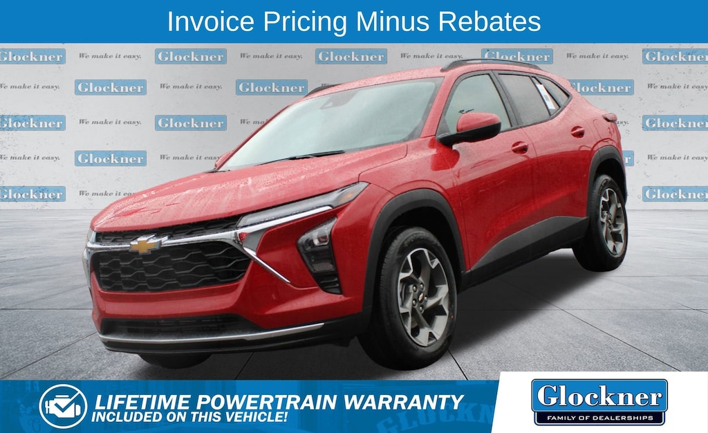 Glockner Chevrolet is proud to offer this good-looking 2026 Chevrolet Trax in Apex Red. This 2026 Chevrolet Trax has passed our comprehensive inspection and comes with the following features; Driver Confidence Package (Adaptive Cruise Control, Lane Change Alert with Side Blind Zone Alert, Rear Cross Traffic Alert, and Rear Park Assist), Interior Protection Package (Front and Rear Jet Black All-Weather Floor Liners and Jet Black Cargo Liner), LT Convenience Package (Front Doors Keyless Open, Heated Driver and Front Passenger Seats, Heated Power-Adjustable Outside Mirrors, Heated Steering Wheel, and Wrapped Steering Wheel), Trax LT, 4D Sport Utility, Apex Red, 2-Way Adjustable Front Head Restraints, 3.50 Final Drive Axle Ratio, 4-Way Manual Front Passenger Seat Adjuster, 4-Wheel Disc Brakes, 6 Speakers, 6-Speaker Audio System Feature, 6-Way Manual Driver Seat Adjuster, ABS brakes, Air Conditioning, Alloy wheels, AM/FM radio: SiriusXM, Auto High-beam Headlights, Automatic temperature control, Brake assist, Bumpers: body-color, Cloth/Evotex Seat Trim, Compass, Delay-off headlights, Driver door bin, Driver vanity mirror, Dual front impact airbags, Dual front side impact airbags, Electronic Stability Control, Emergency communication system: OnStar One Essentials, Exterior Parking Camera Rear, Front anti-roll bar, Front Bucket Seats, Front Center Armrest, Front reading lights, Front wheel independent suspension, Fully automatic headlights, Illuminated entry, Low tire pressure warning, Occupant sensing airbag, Outside temperature display, Overhead airbag, Overhead console, Panic alarm, Passenger door bin, Passenger vanity mirror, Power door mirrors, Power steering, Power windows, Premium audio system: Chevrolet Infotainment 3, Radio data system, Radio: AM/FM Stereo Audio System, Rear window defroster, Rear window wiper, Remote keyless entry, Security system, SiriusXM Trial Subscription, Speed control, Split folding rear seat, Spoiler, Steering wheel mounted audio controls, Tachometer, Telescoping steering wheel, Tilt steering wheel, Traction control, Trip computer, Variably intermittent wipers, Wheels: 17 Inch Gray-Painted Machined Aluminum Alloy, and Wireless Apple CarPlay/Wireless Android Auto.