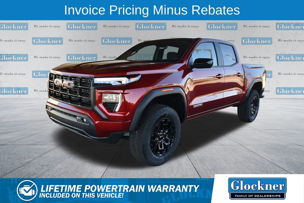 Glockner Chevrolet is proud to offer this outstanding 2026 GMC Canyon in Volcanic Red Tintcoat. This 2026 GMC Canyon has passed our comprehensive inspection and comes with the following features; Canyon Safety Plus Package (Rear Cross Traffic Braking and Ultrasonic Rear Park Assist), Convenience Package (120-Volt Bed Mounted Power Outlet, 2 Rear USB Ports in Center Console (Charge-Only), Front LED Fog Lamps, Inside Rear-View Auto-Dimming Mirror, MultiStow Tailgate Storage Compartment, Rear of Console 120-Volt Power Outlet, Remote Vehicle Starter System, and Tailgate Keyed Cylinder Lock), Preferred Equipment Group 4VL (Automatic Emergency Braking, Canyon Pro Safety, Following Distance Indicator, and Forward Collision Alert), Canyon Elevation, 4D Crew Cab, 2.7L I4 Turbocharged DOHC 16V LEV3-SULEV30 310hp, 4WD, Volcanic Red Tintcoat, 1 Rear USB Port in Center Console (Charge-Only), 2 1st Row USB Charge/Data Ports, 3 Years SiriusXM, 3.42 Rear Axle Ratio, 4-Way Manual Front Passenger Seat Adjuster, 4-Wheel Disc Brakes, 6 Speakers, 6-Speaker Audio System Feature, 6-Way Manual Driver Seat Adjuster, ABS brakes, Air Conditioning, Alloy wheels, AM/FM radio: SiriusXM with 360L, Apple CarPlay/Android Auto, Auto High-beam Headlights, Automatic Stop/Start, Brake assist, Bumpers: body-color, Cloth Seat Trim, Compass, Delay-off headlights, Driver door bin, Driver Mode Selector, Driver vanity mirror, Dual front impact airbags, Dual front side impact airbags, Electronic Stability Control, Emergency communication system: OnStar, Front anti-roll bar, Front Bucket Seats, Front Center Armrest, Front Passenger Seatback Map Pocket, Front wheel independent suspension, Heated door mirrors, Illuminated entry, Low tire pressure warning, Navigation System, Occupant sensing airbag, Off-Road Suspension, Outside temperature display, Overhead airbag, Overhead console, Panic alarm, Passenger door bin, Passenger vanity mirror, Power door mirrors, Power steering, Power windows, Radio data system, Rear reading lights, Rear step bumper, Rear window defroster, Remote keyless entry, Security system, Speed control, Speed-sensing steering, Split folding rear seat, Steering wheel mounted audio controls, Stop/Start System Disable Button Engine Control, Tachometer, Tilt steering wheel, Traction control, Trip computer, Variably intermittent wipers, Wheels: 18 x 8.5 Gloss Black Finish Aluminum, and Wireless Apple CarPlay/Wireless Android Auto.