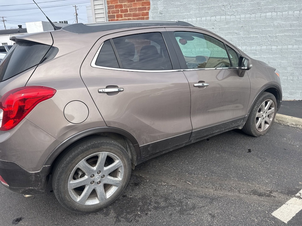 Glockner of Ironton is proud to offer this great-looking 2014 Buick Encore in Cocoa Silver Metallic. This 2014 Buick Encore has passed our comprehensive inspection and comes with the following features; 1SL Equipment Group (120-Volt Power Outlet, Auto-Dimming Inside Rear-View Mirror, Dual-Zone Automatic Climate Control, Front Fog Lamps, and Remote Vehicle Starter System), 18 Chromed Aluminum Wheels, 3.53 Final Drive Ratio, 4-Wheel Disc Brakes, 6 Speakers, ABS brakes, Air Conditioning, Alloy wheels, AM/FM radio: SiriusXM, Auto-dimming Rear-View mirror, Automatic temperature control, Brake assist, Bumpers: body-color, CD player, Compass, Delay-off headlights, Driver door bin, Driver vanity mirror, Driver's Seat Mounted Armrest, Dual front impact airbags, Dual front side impact airbags, Electronic Stability Control, Emergency communication system: OnStar Directions & Connections, Exterior Parking Camera Rear, Front anti-roll bar, Front Bucket Seats, Front dual zone A/C, Front fog lights, Front reading lights, Front wheel independent suspension, Fully automatic headlights, Heated door mirrors, Heated Driver & Front Passenger Seats, Heated front seats, Heated steering wheel, Illuminated entry, Knee airbag, Leather steering wheel, Leather-Appointed Seat Trim, Low tire pressure warning, Memory seat, Occupant sensing airbag, Outside temperature display, Overhead airbag, Panic alarm, Passenger door bin, Passenger vanity mirror, Power door mirrors, Power driver seat, Power passenger seat, Power steering, Power Tilt-Sliding Sunroof, Power windows, Premium audio system: IntelliLink, Radio data system, Radio: AM/FM Audio System w/MP3 CD Player, Rear seat center armrest, Rear side impact airbag, Rear window defroster, Rear window wiper, Remote keyless entry, Ride & Handling Suspension, Roof rack: rails only, Security system, SiriusXM Satellite Radio, Speed control, Speed-sensing steering, Split folding rear seat, Spoiler, Steering wheel mounted audio controls, Tachometer, Telescoping steering wheel, Tilt steering wheel, Traction control, Trip computer, Turn signal indicator mirrors, Variably intermittent wipers, and Wheels: 18 Painted Cast Aluminum.Odometer is 26334 miles below market average!25/33 City/Highway MPGReviews:* Those who subscribe to the axiom good things come in small packages will have their beliefs validated by the 2014 Buick Encore. Front-wheel drive (FWD) or all-wheel drive (AWD), a long list of available equipment, and an inviting interior design make this Buick the Cadillac of compact SUVS. Source: KBB.com* Quiet interior; great fuel economy; impressive list of tech and safety features. Source: EdmundsAwards:* JD Power Initial Quality Study * 2014 KBB.com 5-Year Cost to Own Awards * 2014 KBB.com Brand Image Awards