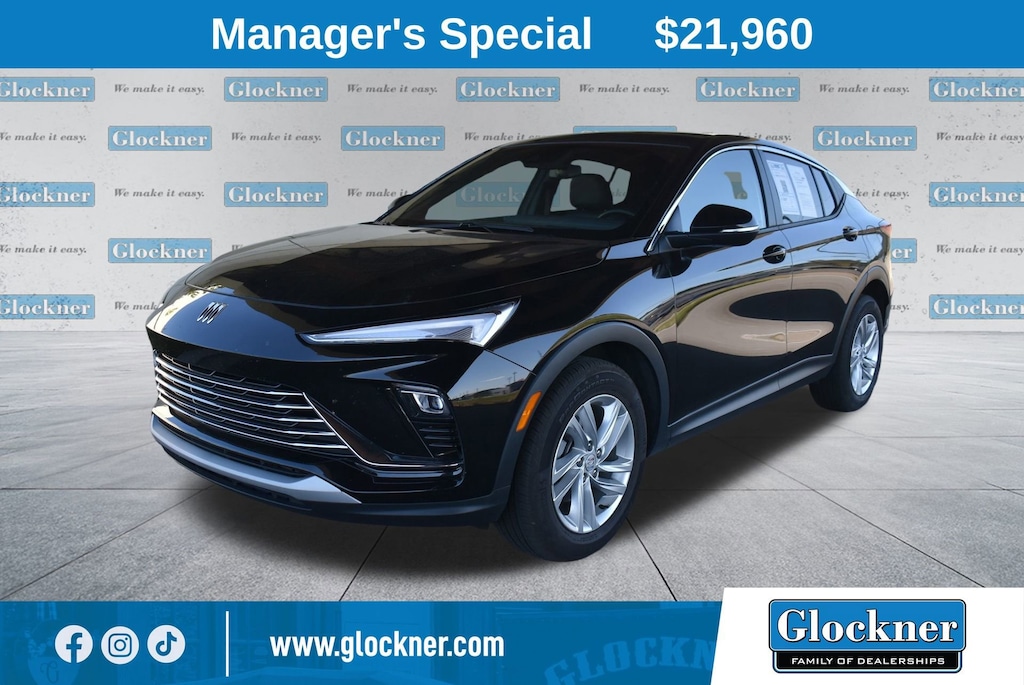 Glockner of Ironton is proud to offer this superb-looking 2024 Buick Envista in Ebony Twilight Metallic. This 2024 Buick Envista has passed our comprehensive inspection and comes with the following features; Convenience I Package (2-Way Power Driver Lumbar Control, 8-Way Power Driver Seat Adjuster, Flat-Bottom Wrapped Steering Wheel, Front Doors Keyless Open, Heated Driver & Front Passenger Seats, Heated Steering Wheel, and Remote Vehicle Starter System), Convenience II Package (Front Intermittent Rainsense Wipers, Power Liftgate, and Wireless Charging), Preferred Equipment Group G02, Glockner Certified Certified, 2 USB Ports (1 Type-A, 1 Type-C), 3.50 Final Drive Axle Ratio, 4-Way Manual Passenger Seat Adjuster, 4-Wheel Disc Brakes, 6 Speakers, 6-Way Manual Driver Seat Adjuster, ABS brakes, Air Conditioning, All-Weather Floor Liners (LPO), Alloy wheels, AM/FM radio: SiriusXM, Auto High-beam Headlights, Automatic temperature control, Brake assist, Bumpers: body-color, Cloth w/Leatherette Seat Trim, Compass, Delay-off headlights, Driver door bin, Driver vanity mirror, Dual front impact airbags, Dual front side impact airbags, Electronic Stability Control, Emergency communication system: OnStar, Exterior Parking Camera Rear, Front anti-roll bar, Front Bucket Seats, Front Center Armrest, Front reading lights, Front wheel independent suspension, Fully automatic headlights, Heated door mirrors, Illuminated entry, Low tire pressure warning, Occupant sensing airbag, Outside temperature display, Overhead airbag, Overhead console, Panic alarm, Passenger door bin, Passenger vanity mirror, Power door mirrors, Power steering, Power windows, Premium 6-Speaker Audio System Feature, Radio data system, Radio: AM/FM Stereo Audio System, Rear window defroster, Remote keyless entry, Security system, SiriusXM, Speed control, Split folding rear seat, Steering wheel mounted audio controls, Tachometer, Telescoping steering wheel, Tilt steering wheel, Traction control, Trip computer, Turn signal indicator mirrors, Variably intermittent wipers, Wheels: 17 Bright Silver Painted Aluminum, and Wireless Apple CarPlay/Wireless Android Auto.