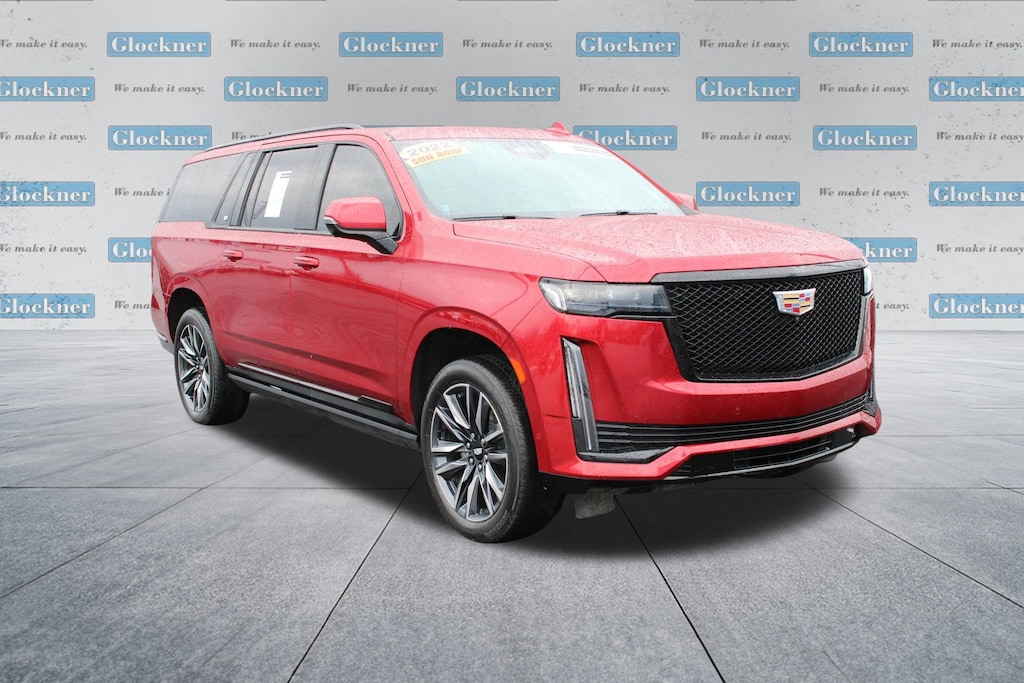 Glockner Chevrolet is proud to offer this good-looking 2022 Cadillac Escalade ESV in Infrared Tintcoat. This 2022 Cadillac Escalade ESV has passed our comprehensive inspection and comes with the following features; All-Weather Floor Liner Package (LPO), Floor Liner Package (LPO) (All-Weather Integrated Cargo Liner (LPO)), Preferred Equipment Group 1SC (Adaptive Cruise Control, AKG Studio 19-Speaker Audio System, Automatic Seat Belt Tightening, Automatic Stop/Start, Body-Color Door Handles, Door Lock & Latch Shields, Electronic Limited-Slip Differential, Enhanced Automatic Emergency Braking, Enhanced Automatic Parking Assist, Glass Breakage Sensor, Heated & Ventilated Driver & Front Passenger Seats, Hitch Guidance w/Hitch View, Integrated Trailer Brake Controller, Power Panoramic Tilt-Sliding Sunroof, Rear Camera Mirror, Rear Camera Mirror Washer, Rear Cross Traffic Alert, Reconfigurable Full-Color Head-Up Display, Reverse Automatic Braking, Running Board Assist Steps, Smart Trailer Integration Indicator, Start/Stop System Disable Button, Theft-Deterrent Alarm System, Trailer Side Blind Zone Alert, Vehicle Inclination Sensor, and Vehicle Interior Movement Sensor), Touring Package (Air Ride Adaptive Suspension, Illuminating Front & Rear Sill Plates, and Soft Closing Front & Rear Doors), Escalade ESV Sport, 4D Sport Utility, 4WD, 16.9 Diagonal OLED Infotainment Screen, 19 Speakers, 2-Presets Memory For Driver Seat Adjuster, 2nd Row 60/40 Split-Folding Power Release Bench, 3.23 Axle Ratio, 3rd row seats: split-bench, 4-Wheel Disc Brakes, 8-Way Power Driver Seat Adjuster, 8-Way Power Front Passenger Seat Adjuster, ABS brakes, Adaptive suspension, Air Conditioning, AKG Studio Reference 36-Speaker Audio System, Alloy wheels, AM/FM radio: SiriusXM with 360L, Apple CarPlay/Android Auto, Audio memory, Auto High-beam Headlights, Auto tilt-away steering wheel, Auto-dimming door mirrors, Automatic temperature control, Brake assist, Bumpers: body-color, Compass, Delay-off headlights, Driver door bin, Driver vanity mirror, Dual front impact airbags, Dual front side impact airbags, Electronic Stability Control, Emergency communication system: OnStar and Cadillac connected services capable, Four wheel independent suspension, Front anti-roll bar, Front Bucket Seats, Front Center Armrest w/Storage, Front dual zone A/C, Front reading lights, Fully automatic headlights, Garage door transmitter, Gloss Black Escalade Nameplate (LPO), HD Radio, Heads-Up Display, Heated door mirrors, Heated Driver & Front Passenger Seats, Heated front seats, Heated rear seats, Heated steering wheel, Illuminated entry, Leather Seating Surfaces w/Precision Perf Inserts, Leather steering wheel, Low tire pressure warning, Magnetic Ride Control Suspension, Memory seat, Navigation System, Not Equipped w/4-Way Driver & Fr Pass Pwr Lumbar, Not Equipped w/Steering Column Lock, Occupant sensing airbag, Outside temperature display, Overhead airbag, Overhead console, Panic alarm, Passenger door bin, Passenger vanity mirror, Power door mirrors, Power driver seat, Power Liftgate, Power moonroof, Power passenger seat, Power steering, Power windows, Power-Retractable Assist Steps, Puddle Lamps w/Cadillac Crest (LPO), Radio data system, Radio: AM/FM/SiriusXM w/Navigation, Rain sensing wipers, Rear air conditioning, Rear anti-roll bar, Rear reading lights, Rear window defroster, Rear window wiper, Remote keyless entry, Roof rack: rails only, Security system, SiriusXM w/360L, Speed control, Split folding rear seat, Spoiler, Steering wheel memory, Steering wheel mounted audio controls, Super Cruise, Tachometer, Teen Driver, Telescoping steering wheel, Tilt steering wheel, Traction control, Trip computer, Turn signal indicator mirrors, Variably intermittent wipers, Ventilated front seats, Voltmeter, Wheels: 22 12-Spoke Polished Alloy, and Wireless Apple CarPlay/Wireless Android Auto.