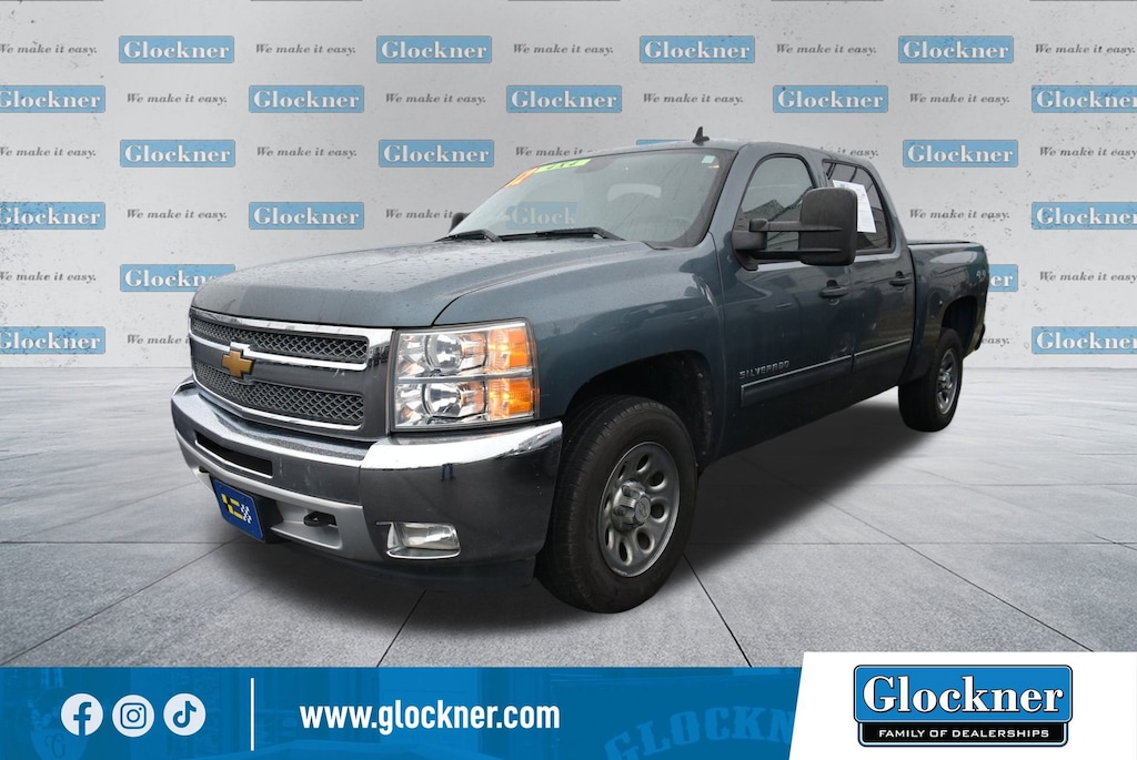 Glockner of Ironton is proud to offer this reliable 2012 Chevrolet Silverado 1500 in Blue Granite Metallic. This 2012 Chevrolet Silverado 1500 has passed our comprehensive inspection and comes with the following features; Convenience Package (Electric Rear-Window Defogger, Power-Adjustable Pedals For Accelerator & Brake, Remote Vehicle Starter System, Ultrasonic Rear Parking Assist w/Audible Warning, and Universal Home Remote), Heavy Duty Cooling Package (Heavy-Duty Air-to-Oil External Engine Oil Cooler and Heavy-Duty Auxiliary External Transmission Oil Cooler), Heavy-Duty Handling/Trailering Suspension Package, Heavy-Duty Trailering Package (Retail), Interior Plus Package (AM/FM Stereo w/CD Player & MP3 Playback, Bluetooth® For Phone, Dual-Zone Automatic Climate Control, EZ-Lift Tailgate, Front Halogen Fog Lamps, Locking Tailgate, SIRIUSXM Satellite Radio, and Steering Wheel Mounted Audio Controls), LT1 Equipment Group (6 Speaker Audio System Feature, Body-Colored Bodyside Moldings, Chrome Grille Surround, Color-Keyed Carpeting w/Rubberized Vinyl Floormats, Driver & Front Passenger Illuminated Visor Mirrors, Driver-Side Manual Lumbar Control Seat Adjuster, Electronic Autotrac Transfer Case, Heated Power-Adjustable Black Outside Mirrors, Leather-Wrapped Steering Wheel, Power Door Locks w/Remote Keyless Entry, Power Windows w/Driver Express-Down, Remote Keyless Entry w/2 Transmitters, and Solar-Ray Deep-Tinted Glass), 6-Speed Automatic Electronic with Overdrive, 4WD, Ebony Cloth, 17 x 7.5 6-Lug Chrome-Styled Steel Wheels, 3.42 Rear Axle Ratio, 6 Speakers, 6-Way Power Driver Seat Adjuster, ABS brakes, Air Conditioning, AM/FM radio: SiriusXM, AM/FM Stereo w/MP3 Compatible CD Player, Black Power-Adjustable Heated Outside Mirrors, Bodyside moldings, Bumpers: chrome, CD player, Compass, Delay-off headlights, Driver door bin, Driver vanity mirror, Dual front impact airbags, Dual front side impact airbags, Electronic Stability Control, Emergency communication system: OnStar Directions & Connections, Front 40/20/40 Split-Bench Seat, Front anti-roll bar, Front Center Armrest w/Storage, Front License Plate Bracket, Front reading lights, Front wheel independent suspension, Fully automatic headlights, Heated door mirrors, Illuminated entry, Inside Rear-View Mirror w/Rear Camera Display, Integrated Trailer Brake Controller, Low tire pressure warning, Occupant sensing airbag, Outside temperature display, Overhead airbag, Overhead console, Panic alarm, Passenger door bin, Passenger vanity mirror, Power door mirrors, Power steering, Power windows, Premium Cloth Seat Trim, Radio data system, Rear reading lights, Rear seat center armrest, Rear step bumper, Rear Vision Camera, Remote keyless entry, Security system, Speed control, Split folding rear seat, Tachometer, Tilt steering wheel, Traction control, Variably intermittent wipers, and Voltmeter.