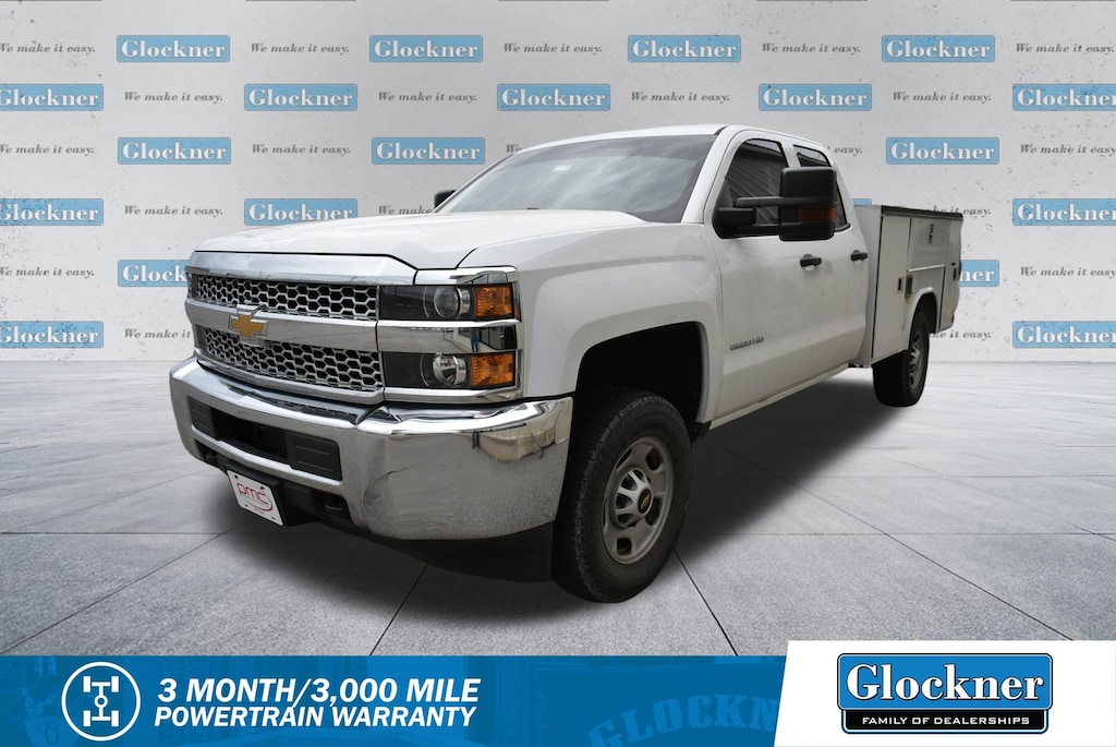 Glockner Chrysler Dodge Jeep Ram of Ashland is proud to offer this rock solid 2019 Chevrolet Silverado 2500HD in Summit White. This 2019 Chevrolet Silverado 2500HD has passed our comprehensive inspection and comes with the following features; Preferred Equipment Group 1WT (Rear Full-Width Folding Bench Seat and Steering Wheel), Snow Plow Prep Package (220 Amps Alternator and Provision for Cab Roof-Mounted Lamp/Beacon), Standard Suspension Package, WT Convenience Package (110-Volt AC Power Outlet, Auto-Dimming Inside Rear-View Mirror, Black Power-Adjustable Heated Outside Mirrors, Deep-Tinted Glass, and Remote Keyless Entry), 6-Speed Automatic HD Electronic with Overdrive, 4WD, Dark Ash With Jet Black Interior Accents Vinyl, 17" Steel Wheels, 4 Upfitter Switches, 4-Wheel Disc Brakes, 4.10 Rear Axle Ratio, 6 Speakers, ABS brakes, Air Conditioning, AM/FM radio, Brake assist, Bumpers: chrome, Cloth Seat Trim, Delay-off headlights, Driver door bin, Dual front impact airbags, Dual front side impact airbags, Electronic Stability Control, Exterior Parking Camera Rear, Front 40/20/40 Reclining Split-Bench Seat, Front anti-roll bar, Front Center Armrest w/Storage, Front License Plate Kit, Front reading lights, Front wheel independent suspension, Frontal Passenger-Side Air Bag Deactivation Switch, Fully automatic headlights, Integrated Trailer Brake Controller (DISC), Low tire pressure warning, Occupant sensing airbag, Overhead airbag, Overhead console, Passenger door bin, Passenger vanity mirror, Power steering, Power windows, Premium audio system: Chevrolet Infotainment System, Radio: Chevrolet Infotainment System, Rear reading lights, Rear step bumper, Speed control, Tachometer, Tilt steering wheel, Traction control, Trip computer, Variably intermittent wipers, and Voltmeter.