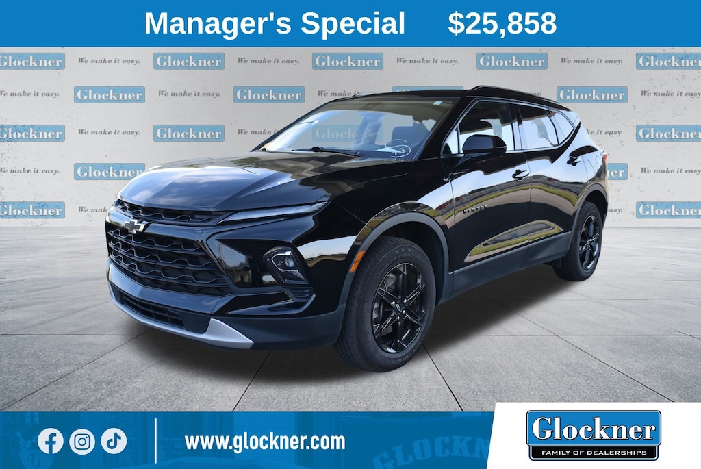 Glockner of Ironton is proud to offer this gorgeous 2023 Chevrolet Blazer in Black. This 2023 Chevrolet Blazer has passed our comprehensive inspection and comes with the following features; Convenience Package (Adaptive Cruise Control, Black Roof-Mounted Side Rails, Enhanced Automatic Emergency Braking, Heated Driver & Front Passenger Seats, Inside Rear-View Auto-Dimming Mirror, Rear Power Programmable Liftgate, Universal Home Remote, and Wireless Charging), Driver Confidence Package (Lane Change Alert w/Side Blind Zone Alert, Rear Cross Traffic Alert, and Rear Park Assist w/Audible Warning), Floor Liner Package (LPO) (1st & 2nd Row All-Weather Floor Liners (LPO) and Integrated Cargo Liner (LPO)), Midnight/Sport Edition (Front & Rear Black Bowties and Wheels: 18 High Gloss Black Painted Aluminum), Preferred Equipment Group 2LT, Glockner Certified Certified, 170 Amp Alternator, 3.47 Final Drive Axle Ratio, 4-Way Manual Front Passenger Seat Adjuster, 4-Wheel Disc Brakes, 6 Speakers, 6-Speaker Audio System Feature, 8-Way Power Driver Seat Adjuster, ABS brakes, Air Conditioning, Alloy wheels, AM/FM radio: SiriusXM with 360L, Apple CarPlay/Android Auto, Auto High-beam Headlights, Automatic temperature control, Brake assist, Bumpers: body-color, Child-Seat-Sensing Airbag, Compass, Delay-off headlights, Driver door bin, Driver vanity mirror, Dual front impact airbags, Dual front side impact airbags, Electronic Stability Control, Emergency communication system: OnStar and Chevrolet connected services capable, Four wheel independent suspension, Front anti-roll bar, Front Bucket Seats, Front Center Armrest, Front dual zone A/C, Front reading lights, Fully automatic headlights, Heated door mirrors, Illuminated entry, Knee airbag, Leather Shift Knob, Low tire pressure warning, Not Equipped w/Rear Park Assist, Occupant sensing airbag, Outside temperature display, Overhead airbag, Overhead console, Panic alarm, Passenger door bin, Passenger vanity mirror, Power door mirrors, Power Driver Lumbar Control, Power driver seat, Power steering, Power windows, Premium audio system: Chevrolet Infotainment 3 Plus, Premium Cloth Seat Trim, Radio data system, Radio: Chevrolet Infotainment 3 Plus System, Rear anti-roll bar, Rear reading lights, Rear seat center armrest, Rear window defroster, Rear window wiper, Remote keyless entry, Ride & Handling Suspension, Security system, SiriusXM w/360L, Speed control, Speed-sensing steering, Split folding rear seat, Spoiler, Steering wheel mounted audio controls, Tachometer, Telescoping steering wheel, Tilt steering wheel, Traction control, Trip computer, Variably intermittent wipers, Voltmeter, and Wheels: 18 Grazen Metallic Aluminum.
