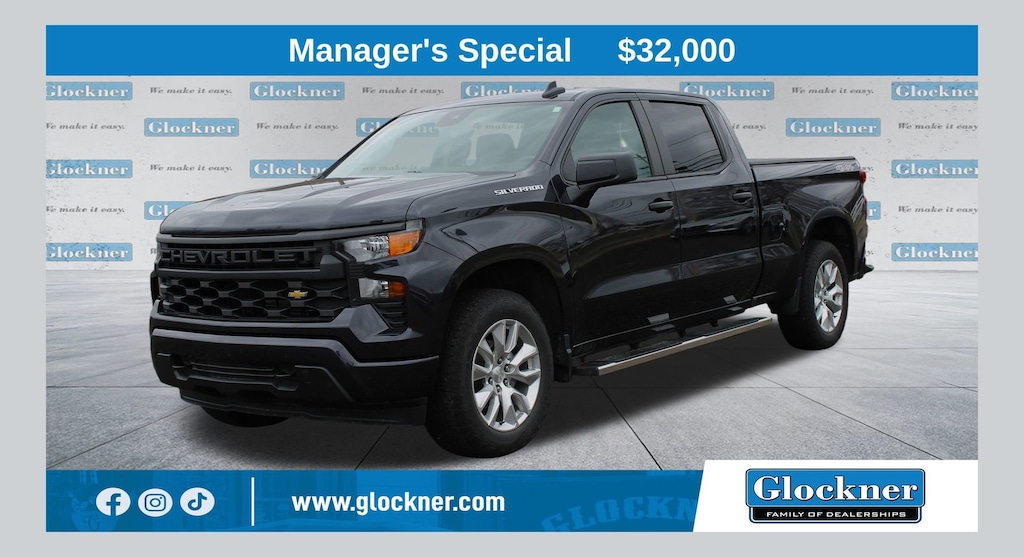 Glockner Chevrolet is proud to offer this hard-working 2023 Chevrolet Silverado 1500 in Dark Ash Metallic. This 2023 Chevrolet Silverado 1500 has passed our comprehensive inspection and comes with the following features; Cloth Rear Seat w/Storage Package, Custom Convenience Package (Electric Rear-Window Defogger, EZ Lift Power Lock & Release Tailgate, LED Cargo Area Lighting, Remote Vehicle Starter System, and Theft Deterrent System (Unauthorized Entry)), Custom Value Package, High Capacity Suspension Package, Preferred Equipment Group 1CX (10-Way Power Driver Seat w/Lumbar, 120-Volt Bed Mounted Power Outlet, 120-Volt Instrument Panel Power Outlet, 3.5 Monochromatic Display Driver Info Center, Bluetooth® For Phone, Chevrolet Connected Access Capable, Color-Keyed Carpeting Floor Covering, Compass, Deep-Tinted Glass, Dual Rear USB Ports (Charge Only), Electrical Steering Column Lock, Electronic Cruise Control, Front Frame-Mounted Black Recovery Hooks, Front Rubberized Vinyl Floor Mats, HD Rear Vision Camera, Manual Tilt Wheel Steering Column, OnStar & Chevrolet Connected Services Capable, Power Front Windows w/Driver Express Up/Down, Power Front Windows w/Passenger Express Down, Power Rear Windows w/Express Down, Rear 60/40 Folding Bench Seat (Folds Up), Rear Rubberized-Vinyl Floor Mats, Remote Keyless Entry, SiriusXM Radio, Standard Tailgate, Wi-Fi Hot Spot Capable, and Wireless Phone Projection), Trailering Package (Hitch Guidance), Silverado 1500 Custom, Glockner Certified Certified, 4D Crew Cab, 4WD, 3.42 Rear Axle Ratio, 4-Wheel Disc Brakes, 40/20/40 Front Split-Bench Seat, 6 Speakers, 6-Speaker Audio System, ABS brakes, Air Conditioning, All-Weather Floor Liner (LPO), Alloy wheels, AM/FM radio: SiriusXM, Apple CarPlay/Android Auto, Auto High-beam Headlights, Auto-Locking Rear Differential, Automatic Emergency Braking, Brake assist, Bumpers: body-color, Chevytec Spray-On Black Bedliner, Cloth Seat Trim, Delay-off headlights, Driver door bin, Driver vanity mirror, Dual front impact airbags, Dual front side impact airbags, Electronic Stability Control, Following Distance Indicator, Forward Collision Alert, Front anti-roll bar, Front Center Armrest w/Storage, Front License Plate Kit, Front Pedestrian Braking, Front reading lights, Front wheel independent suspension, Fully automatic headlights, Heated door mirrors, Illuminated entry, Integrated Trailer Brake Controller, IntelliBeam Automatic High Beam On/Off, Lane Keep Assist w/Lane Departure Warning, Low tire pressure warning, Not Equipped w/Rear USB Ports, Not Equipped w/Steering Column Lock, Occupant sensing airbag, Outside temperature display, Overhead airbag, Overhead console, Panic alarm, Passenger door bin, Passenger vanity mirror, Power door mirrors, Power driver seat, Power steering, Power windows, Premium audio system: Chevrolet Infotainment 3, Radio data system, Radio: Chevrolet Infotainment 3 System, Rear reading lights, Rear step bumper, Rear Wheelhouse Liners, Rear window defroster, Remote keyless entry, Security system, Speed control, Speed-sensing steering, Split folding rear seat, Tachometer, Tilt steering wheel, Traction control, Trip computer, Variably intermittent wipers, Voltmeter, and Wheels: 20 x 9 Bright Silver Painted Aluminum.Clean Auto Check/No Accidents Reported, One Owner, Full Balance of Factory Warranty, Bluetooth / Hands-Free Calling, Rear View Back Up Camera, Apple CarPlay/Android Auto, Silverado 1500 Custom, 4D Crew Cab, 4WD.Certified.Certification Program Details: Type your description hereOdometer is 9836 miles below market average!
