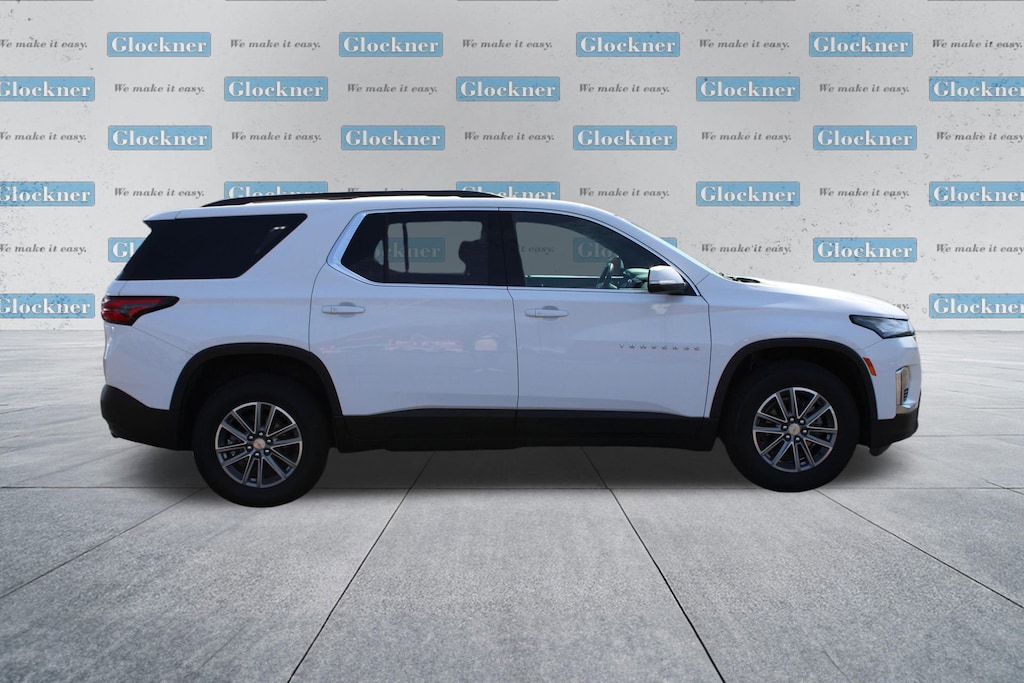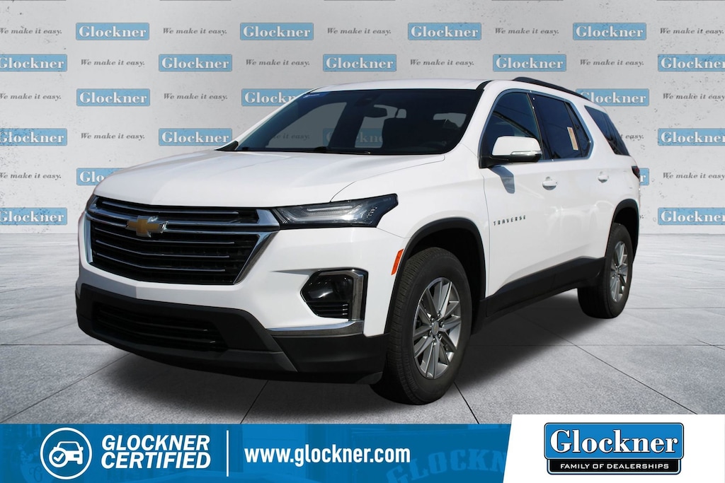 Glockner Chevrolet is proud to offer this attractive 2023 Chevrolet Traverse in Summit White. This 2023 Chevrolet Traverse has passed our comprehensive inspection and comes with the following features; Convenience & Driver Confidence Package (4.2 Multi-Color Enhanced Driver Instrument Display, Heated Driver & Front Passenger Seats, Radio: Chevrolet Infotainment 3 Plus System, Rear Power Liftgate, Remote Start, SiriusXM w/360L, and Universal Home Remote), Preferred Equipment Group 1LT, Glockner Certified Certified, 2-Way Manual Front Passenger Seat Adjuster, 3.49 Axle Ratio, 3rd row seats: split-bench, 4-Wheel Disc Brakes, 6 Speakers, 6-Speaker Audio System Feature, 8-Way Power Driver Seat Adjuster, ABS brakes, Air Conditioning, Alloy wheels, AM/FM radio: SiriusXM, Apple CarPlay/Android Auto, Auto High-beam Headlights, Automatic temperature control, Black Roof Rails, Brake assist, Bumpers: body-color, Compass, Delay-off headlights, Driver door bin, Driver vanity mirror, Dual front impact airbags, Dual front side impact airbags, Electronic Stability Control, Emergency communication system, Exterior Parking Camera Rear, Four wheel independent suspension, Front anti-roll bar, Front Bucket Seats, Front Center Armrest, Front dual zone A/C, Front reading lights, Fully automatic headlights, Heated door mirrors, Illuminated entry, Leather steering wheel, Low tire pressure warning, Not Equipped w/Rear Park Assist (060), Occupant sensing airbag, Outside temperature display, Overhead airbag, Overhead console, Panic alarm, Passenger door bin, Passenger vanity mirror, Power door mirrors, Power Driver Lumbar Control, Power driver seat, Power steering, Power windows, Premium Cloth Seat Trim, Radio data system, Radio: Chevrolet Infotainment System AM/FM Stereo, Rear air conditioning, Rear anti-roll bar, Rear reading lights, Rear window defroster, Rear window wiper, Remote keyless entry, Security system, SiriusXM Radio, Speed control, Speed-sensing steering, Spoiler, Steering wheel mounted audio controls, Tachometer, Telescoping steering wheel, Tilt steering wheel, Traction control, Trip computer, Turn signal indicator mirrors, Variably intermittent wipers, Voltmeter, and Wheels: 18 Bright Silver-Painted Aluminum.