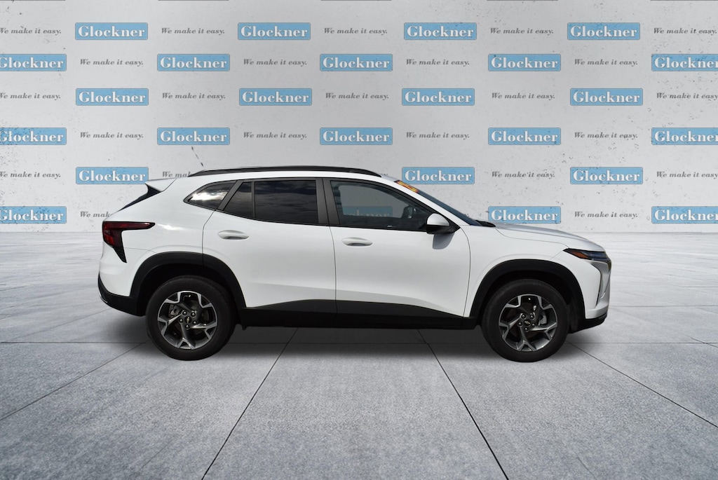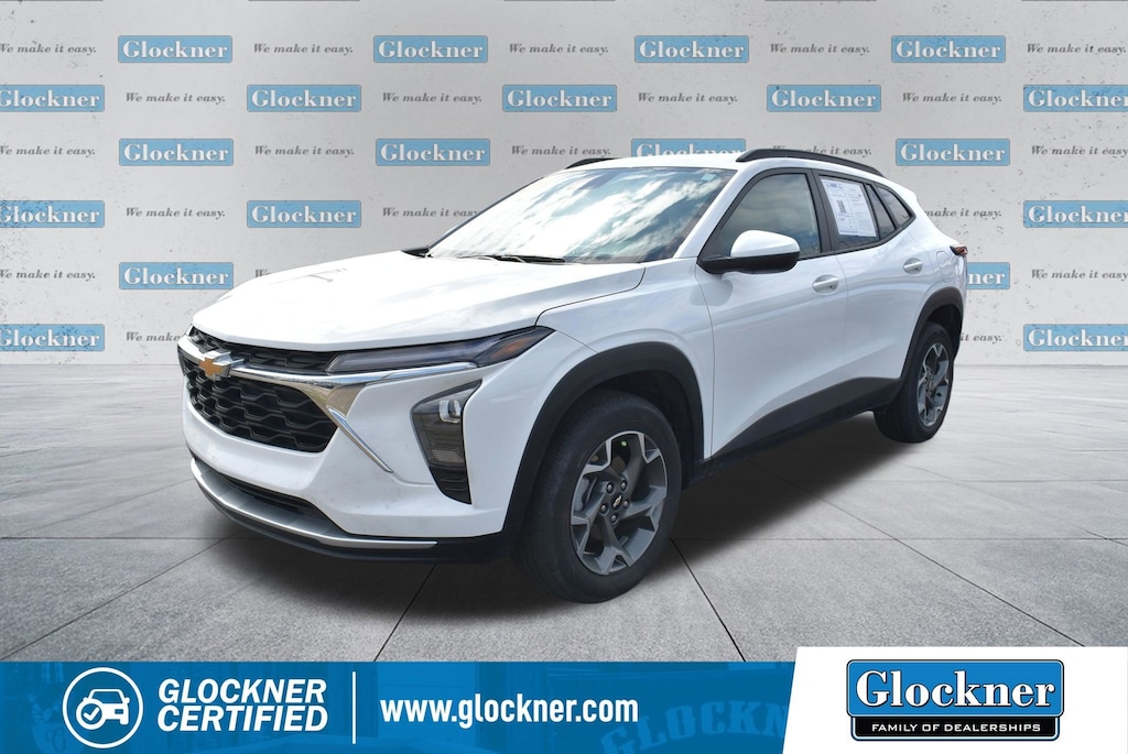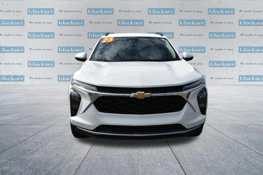 Certified. Certification Program Details: 12 Months or 12,000 miles Comprehensive Warranty. 5 Years or 100,000 miles Powertrain Warranty.Glockner of Ironton is proud to offer this attractive 2025 Chevrolet Trax in Summit White. This 2025 Chevrolet Trax has passed our comprehensive inspection and comes with the following features; Preferred Equipment Group 1LT, Glockner Certified Certified, 2-Way Adjustable Front Head Restraints, 3.50 Final Drive Axle Ratio, 4-Way Manual Front Passenger Seat Adjuster, 4-Wheel Disc Brakes, 6 Speakers, 6-Speaker Audio System Feature, 6-Way Manual Driver Seat Adjuster, ABS brakes, Air Conditioning, Alloy wheels, AM/FM radio: SiriusXM, Auto High-beam Headlights, Automatic temperature control, Brake assist, Bumpers: body-color, Cloth/Evotex Seat Trim, Compass, Delay-off headlights, Driver door bin, Driver vanity mirror, Dual front impact airbags, Dual front side impact airbags, Electronic Stability Control, Emergency communication system: OnStar One Essentials, Exterior Parking Camera Rear, Front anti-roll bar, Front Bucket Seats, Front Center Armrest, Front reading lights, Front wheel independent suspension, Fully automatic headlights, Illuminated entry, Low tire pressure warning, Occupant sensing airbag, Outside temperature display, Overhead airbag, Overhead console, Panic alarm, Passenger door bin, Passenger vanity mirror, Power door mirrors, Power steering, Power windows, Premium audio system: Chevrolet Infotainment 3, Radio data system, Radio: AM/FM Stereo Audio System, Rear window defroster, Rear window wiper, Remote keyless entry, Security system, SiriusXM Trial Subscription, Speed control, Split folding rear seat, Spoiler, Steering wheel mounted audio controls, Tachometer, Telescoping steering wheel, Tilt steering wheel, Traction control, Trip computer, Variably intermittent wipers, and Wheels: 17 Inch Gray-Painted Machined Aluminum Alloy.28/32 City/Highway MPGAwards:* Car and Driver 10 BestCar and Driver, January 2017.