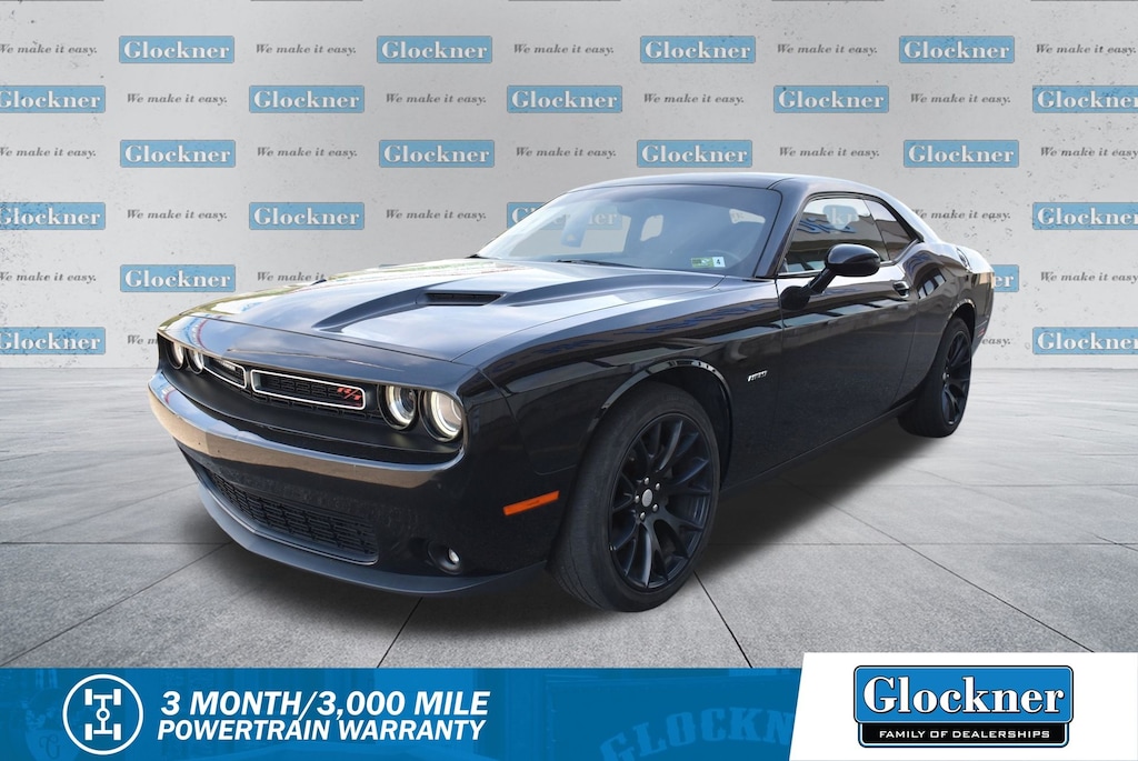 Glockner Chrysler Dodge Jeep Ram of Ashland is proud to offer this terrific 2016 Dodge Challenger in Pitch Black Clearcoat. This 2016 Dodge Challenger has passed our comprehensive inspection and comes with the following features; Quick Order Package 22H R/T (Trunklid Spoiler), 4-Wheel Disc Brakes, 6 Speakers, ABS brakes, Air Conditioning, Alloy wheels, AM/FM radio, Anti-Lock Brakes, Anti-whiplash front head restraints, Auto-dimming Rear-View mirror, Automatic temperature control, Brake assist, Bright Pedals, Bumpers: body-color, Compass, Delay-off headlights, Driver door bin, Driver vanity mirror, Dual front impact airbags, Dual front side impact airbags, Electronic Stability Control, Four wheel independent suspension, Front anti-roll bar, Front Bucket Seats, Front Center Armrest, Front dual zone A/C, Front fog lights, Front reading lights, Fully automatic headlights, Heated door mirrors, Houndstooth Cloth Sport Seats, Illuminated entry, Integrated Voice Command w/Bluetooth, Leather Shift Knob, Low tire pressure warning, Media Hub (SD, USB, AUX Ports), Nav Capable! See Dealer For Details, Outside temperature display, Overhead airbag, Overhead console, Panic alarm, Passenger door bin, Passenger vanity mirror, Power door mirrors, Power driver seat, Power steering, Power windows, Radio data system, Radio: Uconnect 5.0, Rear anti-roll bar, Rear reading lights, Rear seat center armrest, Rear window defroster, Remote keyless entry, Security system, Speed control, Speed-sensing steering, Split folding rear seat, Spoiler, Steering wheel mounted audio controls, Tachometer, Telescoping steering wheel, Tilt steering wheel, Traction control, Trip computer, Variably intermittent wipers, and Wheels: 20" x 8.0" Premium Painted Aluminum.