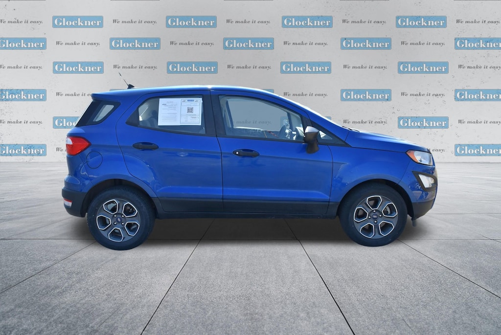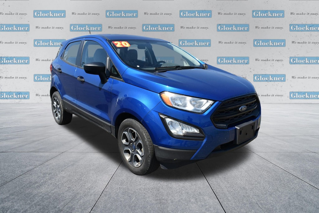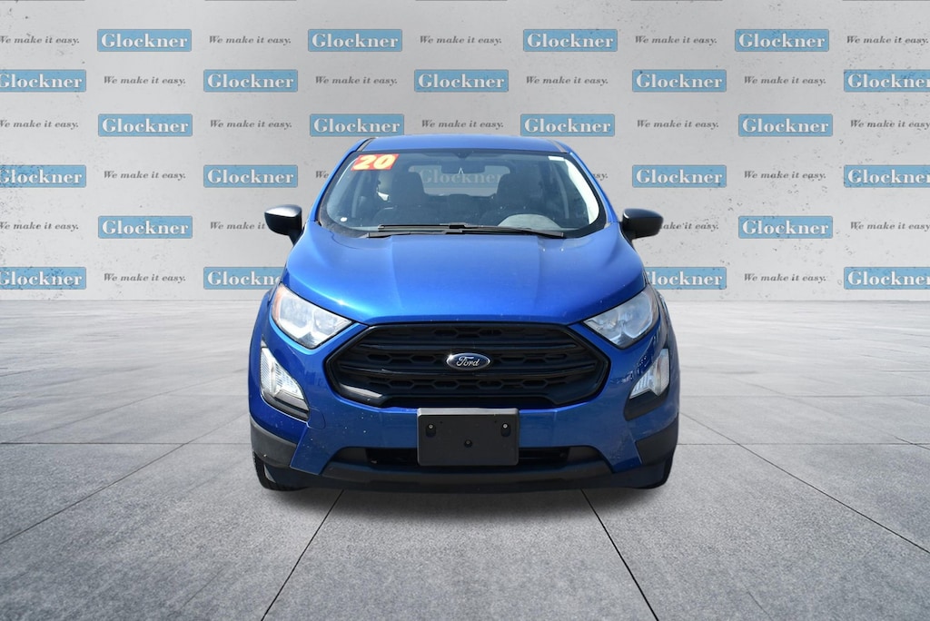 Glockner of Ironton is proud to offer this attractive-looking 2020 Ford EcoSport in Lightning Blue Metallic. This 2020 Ford EcoSport has passed our comprehensive inspection and comes with the following features; Equipment Group 100A, Glockner Certified Certified, 3.44 Axle Ratio, 4-Wheel Disc Brakes, 6 Speakers, ABS brakes, Air Conditioning, Alloy wheels, AM/FM radio, Brake assist, Bumpers: body-color, Cloth Front Bucket Seats, Compass, Delay-off headlights, Driver door bin, Driver vanity mirror, Dual front impact airbags, Dual front side impact airbags, Electronic Stability Control, Emergency communication system: 911 Assist, Exterior Parking Camera Rear, Front anti-roll bar, Front Bucket Seats, Front Center Armrest, Front reading lights, Front wheel independent suspension, Fully automatic headlights, Illuminated entry, Knee airbag, Low tire pressure warning, Occupant sensing airbag, Outside temperature display, Overhead airbag, Overhead console, Panic alarm, Passenger door bin, Passenger vanity mirror, Power door mirrors, Power steering, Power windows, Radio data system, Radio: AM/FM Stereo w/MP3 Capable, Rear seat center armrest, Rear side impact airbag, Rear window defroster, Rear window wiper, Remote keyless entry, Speed control, Speed-sensing steering, Split folding rear seat, Steering wheel mounted audio controls, SYNC Communications & Entertainment System, Tachometer, Telescoping steering wheel, Tilt steering wheel, Tire Inflator & Sealant Kit, Traction control, Trip computer, Variably intermittent wipers, and Wheels: 16 Low-Gloss Magnetic-Painted.