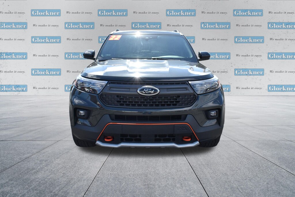 Glockner of Ironton is proud to offer this great 2022 Ford Explorer in Green Metallic. This 2022 Ford Explorer has passed our comprehensive inspection and comes with the following features; Equipment Group 800A, Timberline Technology Package (110V/150W AC Power Outlet, 3rd Row PowerFold Seat, Auto-Dimming Interior Rear-View Mirror, FordPass Connect, Radio: B&O Sound System by Bang & Olufsen, Sideview Mirrors w/Gloss Black Caps, SYNC 3 Communications & Entertainment System, Universal Garage Door Opener (UGDO), and Wireless Charging Pad), 4WD, 1st Row Heated Seats, 3.58 Torsen Limited Slip Rear Axle, 3rd row seats: bench, 4-Wheel Disc Brakes, 4G LTE Wi-Fi Hotspot Removal Credit, 6 Speakers, ABS brakes, ActiveX Seat Material Captain's Charis, Air Conditioning, Alloy wheels, AM/FM radio: SiriusXM, AM/FM Stereo, Auto High-beam Headlights, Auto Start-Stop Removal, Automatic temperature control, Brake assist, Bumpers: body-color, Compass, Delay-off headlights, Driver door bin, Driver vanity mirror, Dual front impact airbags, Dual front side impact airbags, Electronic Stability Control, Emergency communication system: SYNC 3 911 Assist, Exterior Parking Camera Rear, Four wheel independent suspension, Front anti-roll bar, Front Bucket Seats, Front Center Armrest, Front dual zone A/C, Front fog lights, Front reading lights, Fully automatic headlights, Heated door mirrors, Heated front seats, Heated rear seats, Heated steering wheel, Illuminated entry, Knee airbag, Leather steering wheel, Low tire pressure warning, Navigation System, Occupant sensing airbag, Outside temperature display, Overhead airbag, Overhead console, Panic alarm, Passenger door bin, Passenger vanity mirror, Power door mirrors, Power driver seat, Power Liftgate, Power passenger seat, Power steering, Power windows, Rear air conditioning, Rear anti-roll bar, Rear reading lights, Rear window defroster, Rear window wiper, Remote keyless entry, Roof rack: rails only, Security system, SelectShift Capability w/Paddle Shifters, Speed control, Speed-sensing steering, Speed-Sensitive Wipers, Split folding rear seat, Spoiler, Sport steering wheel, Steering wheel mounted audio controls, SYNC 3/Apple CarPlay/Android Auto, Tachometer, Telescoping steering wheel, Tilt steering wheel, Traction control, Trip computer, Twin Panel Moonroof, Variably intermittent wipers, Voice-Activated Touchscreen Navigation System, and Wheels: 18" High Gloss Black-Painted Aluminum.