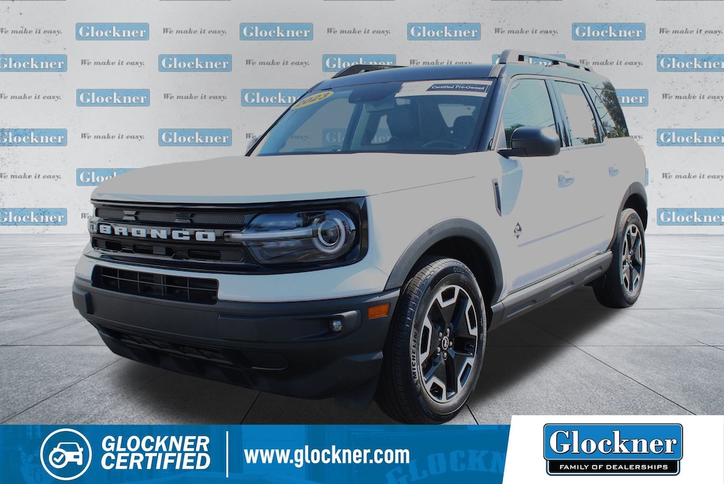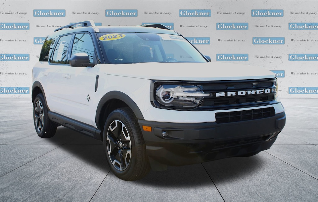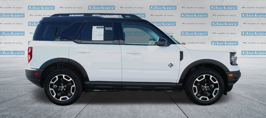 Glockner Chevrolet is proud to offer this terrific-looking 2023 Ford Bronco Sport in Oxford White. This 2023 Ford Bronco Sport has passed our comprehensive inspection and comes with the following features; Equipment Group 300A, Glockner Certified Certified, 3.80 Axle Ratio, 4-Wheel Disc Brakes, 6 Speakers, ABS brakes, Air Conditioning, Alloy wheels, AM/FM radio: SiriusXM, AM/FM Stereo, Auto High-beam Headlights, Auto-dimming Rear-View mirror, Automatic temperature control, Brake assist, Compass, Delay-off headlights, Driver door bin, Driver vanity mirror, Dual front impact airbags, Dual front side impact airbags, Electronic Stability Control, Emergency communication system: SYNC 3 911 Assist, Four wheel independent suspension, Front & Rear Floor Liners, Front anti-roll bar, Front Bucket Seats, Front Center Armrest, Front dual zone A/C, Front fog lights, Front reading lights, Fully automatic headlights, Heated door mirrors, Heated front seats, Heated steering wheel, Illuminated entry, Knee airbag, Leather Trimmed Heated Sport Contour Bucket Seats, Low tire pressure warning, Memory seat, Occupant sensing airbag, Outside temperature display, Overhead airbag, Overhead console, Panic alarm, Passenger door bin, Passenger vanity mirror, Power door mirrors, Power driver seat, Power passenger seat, Power steering, Power windows, Radio data system, Rain sensing wipers, Rear anti-roll bar, Rear Parking Sensors, Rear reading lights, Rear seat center armrest, Rear window defroster, Rear window wiper, Remote keyless entry, Security system, SiriusXM, Speed control, Speed-sensing steering, Speed-Sensitive Wipers, Split folding rear seat, Steering wheel mounted audio controls, SYNC 3 Communications & Entertainment System, SYNC 3/Apple CarPlay/Android Auto, Tachometer, Telescoping steering wheel, Tilt steering wheel, Traction control, Trip computer, Variably intermittent wipers, and Wheels: 18 Ebony Black-Painted Aluminum.