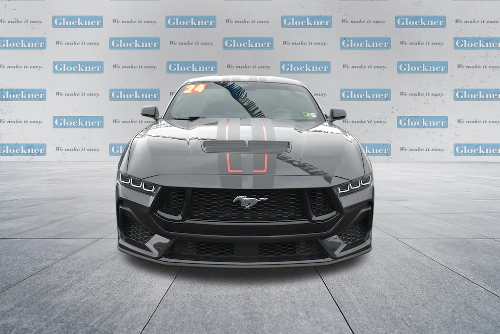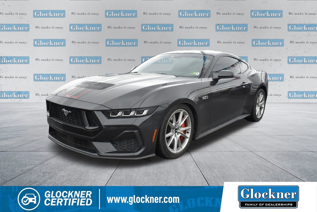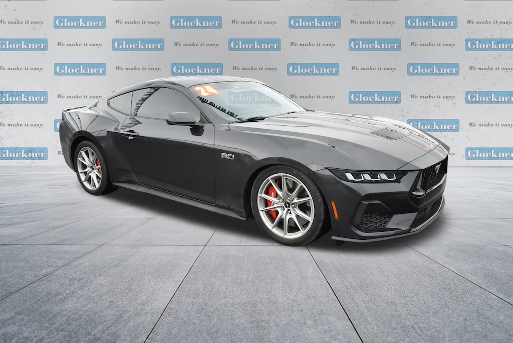 Certified. Certification Program Details: 12 Months or 12,000 miles Comprehensive Warranty. 5 Years or 100,000 miles Powertrain Warranty.Glockner of Ironton is proud to offer this terrific-looking 2024 Ford Mustang in Dark Matter Gray Metallic. This 2024 Ford Mustang has passed our comprehensive inspection and comes with the following features; Equipment Group 401A High Package (Integrated Turn Signals, Leather-Trimmed Bucket Seats w/Color Accents, and Memory Driver Seat & Mirrors), Ford Co-Pilot360 Assist+ (Connected Built-In Navigation and Pre-Collision Assist w/Automatic Emergency Braking), Security Package (Active Anti-Theft System), Glockner Certified Certified, 19 Branded Brake System w/Performance Linings, 3.55 Limited Slip Rear Axle, 4-Wheel Disc Brakes, 9 Speakers, ABS brakes, Active Valve Performance Exhaust, Air Conditioning, Alloy wheels, AM/FM radio: SiriusXM with 360L, AM/FM Stereo, Auto High-beam Headlights, Auto-dimming Rear-View mirror, Automatic temperature control, Brake assist, Bumpers: body-color, Climate Controlled Heated/Cooled Front Seats, Compass, Delay-off headlights, Driver door bin, Driver vanity mirror, Dual front impact airbags, Dual front side impact airbags, Electronic Stability Control, Emergency communication system: 911 Assist, Exterior Parking Camera Rear, Four wheel independent suspension, Front anti-roll bar, Front Bucket Seats, Front Center Armrest, Front dual zone A/C, Front reading lights, Fully automatic headlights, Garage door transmitter, HD Radio, Heated door mirrors, Heated front seats, Heated steering wheel, Illuminated entry, Knee airbag, Leather Shift Knob, Leather steering wheel, Leather-Trimmed Bucket Seats, Low tire pressure warning, Matte Black Stripe w/Red Accent, Occupant sensing airbag, Outside temperature display, Over-the-Top Racing Stripe, Overhead airbag, Overhead console, Panic alarm, Passenger door bin, Passenger vanity mirror, Power door mirrors, Power driver seat, Power passenger seat, Power steering, Power windows, Radio data system, Rain sensing wipers, Rear anti-roll bar, Rear Parking Sensors, Rear window defroster, Red Painted Brake Calipers w/White Logo, Remote keyless entry, SiriusXM w/360L, Speed control, Speed-sensing steering, Speed-Sensitive Wipers, Split folding rear seat, Spoiler, Sport steering wheel, Steering wheel mounted audio controls, SYNC 4.0 QNX, Tachometer, Telescoping steering wheel, Tilt steering wheel, Traction control, Trip computer, Turn signal indicator mirrors, Variably intermittent wipers, Ventilated front seats, Voltmeter, and Wheels: 19 x 8.5 Shadow Silver-Painted Aluminum.Odometer is 4456 miles below market average!
