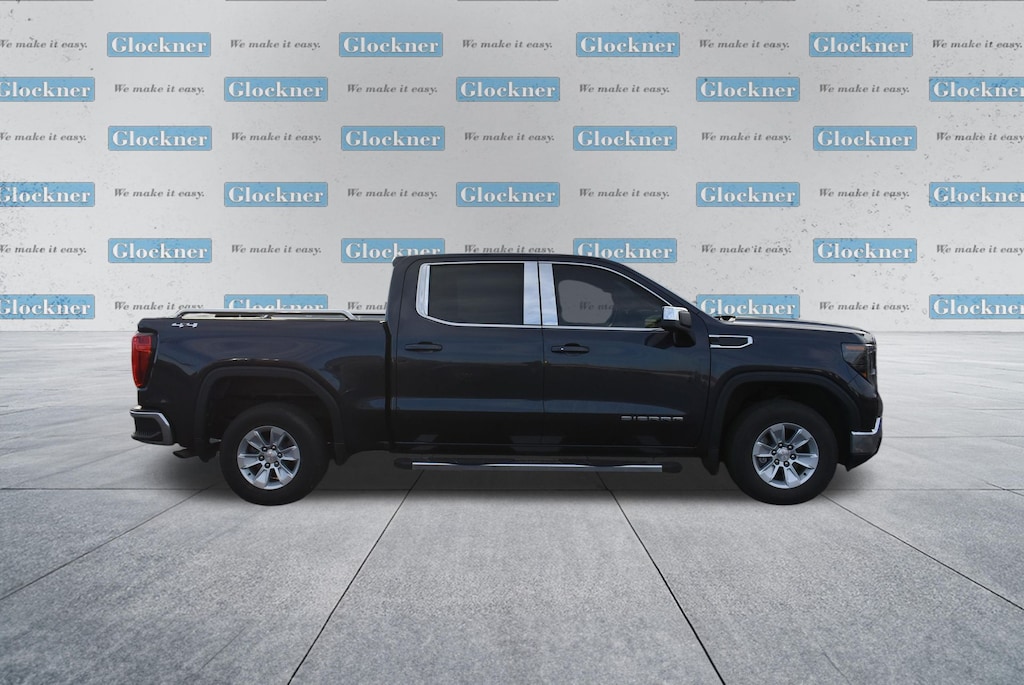 Glockner Chrysler Dodge Jeep Ram of Ashland is proud to offer this gorgeous 2023 GMC Sierra 1500 in Titanium Rush Metallic. This 2023 GMC Sierra 1500 has passed our comprehensive inspection and comes with the following features; Preferred Equipment Group 3SA (120-Volt Bed Mounted Power Outlet, 120-Volt Instrument Panel Power Outlet, 2 Charge/Data USB Ports, 2 Type-C Charge-Only Rear USB Ports, Chrome Header w/Medium Silver Grille Insert Bars, Color-Keyed Carpeting Floor Covering, Compass, Deep-Tinted Glass, Electrical Steering Column Lock, Front Frame-Mounted Black Recovery Hooks, Front Rubberized-Vinyl Floor Mats, GMC Connected Access Capable, HD Rear Vision Camera, Keyless Open & Start, Manual Tilt-Wheel & Telescoping Steering Column, OnStar & GMC Connected Services Capable, Power Door Locks, Power Front Windows w/Driver Express Up/Down, Power Front Windows w/Passenger Express Down, Power Rear Windows w/Express Down, Push Button Start, Rear Rubberized-Vinyl Floor Mats, SiriusXM w/360L, Steering Wheel Audio Controls, Wi-Fi Hotspot Capable, and Wireless Phone Projection), Remote Start Package (Electric Rear-Window Defogger, Remote Vehicle Starter System, and Theft Deterrent System (Unauthorized Entry)), SLE Convenience Package (Dual-Zone Automatic Climate Control and LED Cargo Area Lighting), SLE Value Package (Auto-Locking Rear Differential), Standard Suspension Package, Trailering Package (Hitch Guidance), Glockner Certified Certified, 8-Speed Automatic, 4WD, Black Cloth, 10-Way Power Driver Seat Adjuster w/Lumbar, 220 Amp Alternator, 3.42 Rear Axle Ratio, 3.42 Rear Axle Ratio w/Max Trailering Pkg, 4-Way Manual Passenger Seat Adjuster, 4-Wheel Disc Brakes, 6 Speakers, 6-Speaker Audio System Feature, ABS brakes, Air Conditioning, Alloy wheels, AM/FM radio, Apple CarPlay/Android Auto, Auto High-beam Headlights, Automatic Emergency Braking, Automatic temperature control, Brake assist, Buckle to Drive, Bumpers: chrome, Cloth Seat Trim, Delay-off headlights, Driver door bin, Driver vanity mirror, Dual front impact airbags, Dual front side impact airbags, Electronic Stability Control, Emergency communication system: OnStar and GMC connected services capable, Following Distance Indicator, Forward Collision Alert, Front 40/20/40 Split-Bench Seat, Front anti-roll bar, Front Center Armrest w/Storage, Front dual zone A/C, Front Pedestrian Braking, Front reading lights, Front wheel independent suspension, Fully automatic headlights, Heated door mirrors, Heated Driver & Front Outboard Passenger Seating, Heated front seats, Heated steering wheel, Illuminated entry, IntelliBeam Automatic High Beam On/Off, Lane Keep Assist w/Lane Departure Warning, Low tire pressure warning, Navigation System, Not Equipped w/Steering Column Lock, Occupant sensing airbag, Outside temperature display, Overhead airbag, Overhead console, Panic alarm, Passenger door bin, Passenger vanity mirror, Power door mirrors, Power driver seat, Power steering, Power windows, Premium audio system: GMC Infotainment System, Radio data system, Radio: Premium GMC Infotainment Audio System, Rear reading lights, Rear step bumper, Rear window defroster, Remote keyless entry, Security system, Speed control, Speed-sensing steering, Split folding rear seat, Steering wheel mounted audio controls, Tachometer, Telescoping steering wheel, Tilt steering wheel, Traction control, Trip computer, Variably intermittent wipers, Voltmeter, and Wheels: 17" x 8" Bright Silver Painted Aluminum.
