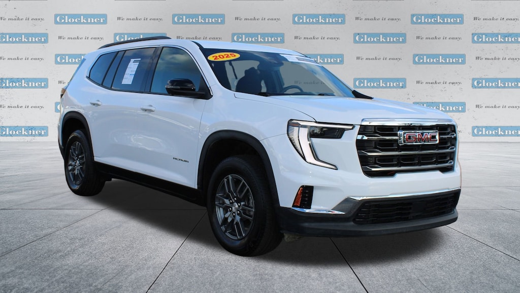 Glockner Chevrolet is proud to offer this great-looking 2025 GMC Acadia in Summit White. This 2025 GMC Acadia has passed our comprehensive inspection and comes with the following features; Preferred Equipment Group 4SD, Glockner Certified Certified, AWD, After Dark Cloth, Auto High-beam Headlights, Bose Premium 12-Speaker System w/Sub-Woofer, Heated Driver & Front Passenger Seats, Heated front seats, Heated steering wheel, Navigation System, Power Liftgate, Radio: 15 Premium GMC Infotainment System, SiriusXM w/360L, 12 Speakers, 18 x 7.5 Aluminum Wheels, 2-Way Driver Power Lumbar Seat Adjuster, 3.49 Final Drive Axle Ratio, 3rd row seats: split-bench, 4-Way Manual Front Passenger Seat Adjuster, 4-Wheel Disc Brakes, 8-Passenger Seating (2-3-3 Seating Configuration), 8-Way Power Driver Seat Adjuster, ABS brakes, Air Conditioning, Alloy wheels, AM/FM radio: SiriusXM with 360L, Apple CarPlay/Android Auto, Auto-dimming Rear-View mirror, Automatic temperature control, Bodyside moldings, Brake assist, Bumpers: body-color, Cloth Seat Trim, Compass, Delay-off headlights, Driver door bin, Driver vanity mirror, Dual front impact airbags, Dual front side impact airbags, Electronic Stability Control, Emergency communication system: OnStar Services capable, Exterior Parking Camera Rear, Four wheel independent suspension, Front anti-roll bar, Front Bucket Seats, Front Center Armrest, Front dual zone A/C, Front fog lights, Front reading lights, Fully automatic headlights, Heated door mirrors, Illuminated entry, Leather steering wheel, Low tire pressure warning, Occupant sensing airbag, Outside temperature display, Overhead airbag, Overhead console, Panic alarm, Passenger door bin, Passenger vanity mirror, Power door mirrors, Power driver seat, Power steering, Power windows, Radio data system, Rear air conditioning, Rear anti-roll bar, Rear reading lights, Rear seat center armrest, Rear side impact airbag, Rear window defroster, Rear window wiper, Remote keyless entry, Security system, Speed control, Speed-sensing steering, Split folding rear seat, Spoiler, Sport steering wheel, Steering wheel mounted audio controls, Tachometer, Telescoping steering wheel, Tilt steering wheel, Traction control, Trip computer, Turn signal indicator mirrors, Variably intermittent wipers, and Voltmeter.