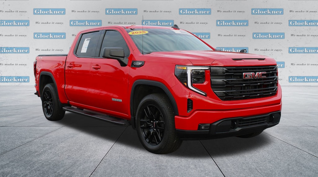 Glockner Chevrolet is proud to offer this good-looking 2025 GMC Sierra 1500 in Cardinal Red. This 2025 GMC Sierra 1500 has passed our comprehensive inspection and comes with the following features; Cloth Rear Seat w/Storage Package, High Capacity Suspension Package, Max Trailering Package (Enhanced Cooling Radiator, Heavier Duty Rear Springs, and Increased RGAWR), Preferred Equipment Group 3SB (120-Volt Bed Mounted Power Outlet, 120-Volt Interior Power Outlet, 2 Charge/Data USB Ports, 2 Type-C Charge-Only Rear USB Ports, 6-Speaker Audio System Feature, Auto-Locking Rear Differential, Body Color Header w/Gloss Black Mesh Grille Bars, Color-Keyed Carpeting Floor Covering, Deep-Tinted Glass, Electric Rear-Window Defogger, Front Frame-Mounted Black Recovery Hooks, Front Rubberized-Vinyl Floor Mats, HD Rear Vision Camera, Integrated Trailer Brake Controller, Keyless Open & Start, LED Cargo Area Lighting, Manual Tilt-Wheel & Telescoping Steering Column, OnStar Services Capable, Power Door Locks, Power Front Windows w/Driver Express Up/Down, Power Front Windows w/Passenger Express Down, Power Rear Windows w/Express Down, Push Button Start, Rear Rubberized-Vinyl Floor Mats, Remote Vehicle Starter System, SiriusXM w/360L Trial Subscription, Steering Wheel Audio Controls, Theft Deterrent System (Unauthorized Entry), and Wi-Fi Hotspot Capable), Preferred Package (Adaptive Cruise Control, Hitch View, In-Vehicle Trailering System App, Power Sliding Rear Window w/Rear Defogger, Premium Bose 7-Speaker Sound System, Rear Wheelhouse Liners, and Universal Home Remote), Trailering Package (Hitch Guidance), Sierra 1500 Elevation, Glockner Certified Certified, 4D Crew Cab, EcoTec3 5.3L V8, 4WD, Navigation System, 10-Way Power Driver Seat Adjuster w/Lumbar, 2 Charge/Data USB Ports Inside Center Console, 220 Amp Alternator, 3.42 Rear Axle Ratio, 3.42 Rear Axle Ratio w/Max Trailering Pkg, 4-Way Manual Passenger Seat Adjuster, 4-Wheel Disc Brakes, 6 Speakers, 6 Rectangular Black Tubular Assist Steps (LPO), ABS brakes, Air Conditioning, Alloy wheels, AM/FM radio: SiriusXM with 360L, Apple CarPlay/Android Auto, Auto High-beam Headlights, Automatic Emergency Braking, Automatic temperature control, Auxiliary External Transmission Oil Cooler, Brake assist, Buckle to Drive, Bumpers: body-color, Cloth Seat Trim, Compass, Delay-off headlights, Driver door bin, Driver vanity mirror, Dual front impact airbags, Dual front side impact airbags, Electronic Precision Shift, Electronic Stability Control, Emergency communication system: OnStar, External Engine Oil Cooling, Floor-Mounted Center Console, Following Distance Indicator, Forward Collision Alert, Front 40/20/40 Split-Bench Seat, Front anti-roll bar, Front Bucket Seats, Front Center Armrest w/Storage, Front dual zone A/C, Front fog lights, Front Pedestrian Braking, Front reading lights, Front wheel independent suspension, Fully automatic headlights, Genuine wood dashboard insert, GMC MultiPro Tailgate, Heated door mirrors, Heated Driver & Front Outboard Passenger Seating, Heated front seats, Heated steering wheel, Illuminated entry, IntelliBeam Automatic High Beam On/Off, Lane Keep Assist w/Lane Departure Warning, Low tire pressure warning, Occupant sensing airbag, Outside temperature display, Overhead airbag, Overhead console, Panic alarm, Passenger door bin, Passenger vanity mirror, Power door mirrors, Power driver seat, Power steering, Power windows, Radio data system, Radio: Premium GMC Infotainment Audio System, Rear reading lights, Rear seat center armrest, Rear step bumper, Rear window defroster, Remote keyless entry, Security system, Speed control, Speed-sensing steering, Split folding rear seat, Steering wheel mounted audio controls, Tachometer, Telescoping steering wheel, Tilt steering wheel, Traction control, Trip computer, Variably intermittent wipers, Voltmeter, Wheels: 20 x 9 High Gloss Black Painted Aluminum, Wireless Apple CarPlay/Wireless Android Auto, and Wireless Charging.Clean A