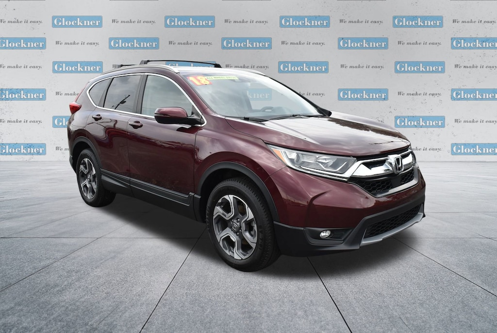Glockner of Ironton is proud to offer this good-looking 2018 Honda CR-V in Molten Lava Pearl. This 2018 Honda CR-V has passed our comprehensive inspection and comes with the following features; AWD, 18 Alloy Wheels, 4-Wheel Disc Brakes, 5.64 Axle Ratio, 8 Speakers, ABS brakes, Air Conditioning, Alloy wheels, AM/FM radio: SiriusXM, Apple CarPlay/Android Auto, Auto High-beam Headlights, Auto-dimming Rear-View mirror, Automatic temperature control, Blind Spot Information (BSI) System warning, Brake assist, Bumpers: body-color, Compass, Delay-off headlights, Driver door bin, Driver vanity mirror, Dual front impact airbags, Dual front side impact airbags, Electronic Stability Control, Exterior Parking Camera Rear, Four wheel independent suspension, Front anti-roll bar, Front Bucket Seats, Front Center Armrest, Front dual zone A/C, Front fog lights, Front reading lights, Fully automatic headlights, Garage door transmitter: HomeLink, Heated door mirrors, Heated Front Bucket Seats, Heated front seats, Illuminated entry, Leather Seat Trim, Leather Shift Knob, Low tire pressure warning, Memory seat, Occupant sensing airbag, Outside temperature display, Overhead airbag, Overhead console, Panic alarm, Passenger door bin, Passenger vanity mirror, Power door mirrors, Power driver seat, Power Liftgate, Power moonroof, Power passenger seat, Power steering, Power windows, Radio data system, Radio: AM/FM/SiriusXM Audio System, Rear anti-roll bar, Rear seat center armrest, Rear window defroster, Rear window wiper, Remote keyless entry, Security system, Speed control, Speed-sensing steering, Speed-Sensitive Wipers, Split folding rear seat, Spoiler, Steering wheel mounted audio controls, Tachometer, Telescoping steering wheel, Tilt steering wheel, Traction control, Trip computer, Turn signal indicator mirrors, and Variably intermittent wipers.