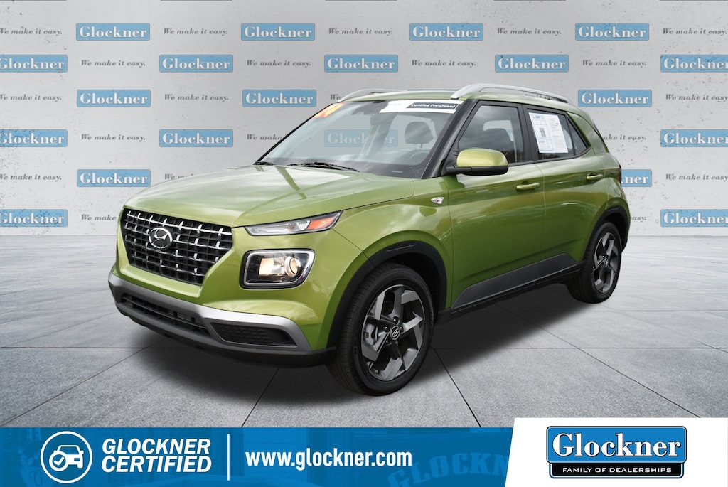 Glockner of Ironton is proud to offer this wonderful-looking 2024 Hyundai Venue in Green Apple. This 2024 Hyundai Venue has passed our comprehensive inspection and comes with the following features; Option Group 01, Glockner Certified Certified, 4-Wheel Disc Brakes, 6 Speakers, 6.052 Axle Ratio, 6.5J x 17 Alloy Wheels, ABS brakes, Air Conditioning, Alloy wheels, AM/FM radio, Apple CarPlay & Android Auto, Auto High-beam Headlights, Automatic temperature control, Brake assist, Bumpers: body-color, Cargo Net, Cargo Tray, Carpeted Floor Mats, Cloth Seat Trim, Delay-off headlights, Driver door bin, Driver vanity mirror, Dual front impact airbags, Dual front side impact airbags, Electronic Stability Control, First Aid Kit, Front anti-roll bar, Front Bucket Seats, Front Center Armrest, Front reading lights, Front wheel independent suspension, Fully automatic headlights, Illuminated entry, Leather Shift Knob, Leather steering wheel, Low tire pressure warning, Occupant sensing airbag, Outside temperature display, Overhead airbag, Overhead console, Panic alarm, Passenger door bin, Passenger vanity mirror, Power door mirrors, Power moonroof, Power steering, Power windows, Radio: AM/FM/HD Display Audio, Rear Seat Cup Holder, Rear window defroster, Rear window wiper, Remote keyless entry, Roof rack: rails only, Security system, Speed control, Speed-sensing steering, Split folding rear seat, Spoiler, Steering wheel mounted audio controls, Tachometer, Telescoping steering wheel, Tilt steering wheel, Traction control, Trip computer, Variably intermittent wipers, and Wheel Locks.