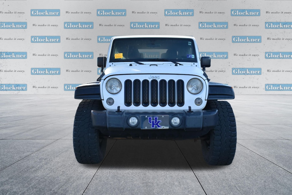Glockner Chrysler Dodge Jeep Ram of Ashland is proud to offer this great-looking and fun 2014 Jeep Wrangler in Bright White Clearcoat. This 2014 Jeep Wrangler has passed our comprehensive inspection and comes with the following features; Connectivity Group (Remote USB Port, Tire Pressure Monitoring Display, Uconnect Voice Command w/Bluetooth, and Vehicle Information Center), Quick Order Package 24B, 1-Year SIRIUSXM Radio Service, 16" x 7.0" Luxury Styled Steel Wheels, 3.21 Rear Axle Ratio, 4-Wheel Disc Brakes, 6 Speakers, ABS brakes, Air Conditioning, AM/FM radio, Brake assist, CD player, Cloth Bucket Seats, Compass, Driver door bin, Driver vanity mirror, Dual front impact airbags, Electronic Stability Control, Engine Block Heater, Front anti-roll bar, Front Bucket Seats, Front Center Armrest w/Storage, Front fog lights, Integrated roll-over protection, Low tire pressure warning, Manufacturer's Statement of Origin, Normal Duty Suspension, Occupant sensing airbag, Outside temperature display, Passenger door bin, Passenger vanity mirror, Power steering, Premium Black Sunrider Soft Top, Radio: Uconnect 130 AM/FM/CD/MP3, Rear anti-roll bar, SIRIUS Satellite Radio, Speed control, Steering wheel mounted audio controls, Sunrider Soft Top, Tachometer, Tilt steering wheel, Traction control, Trip computer, and Variably intermittent wipers.