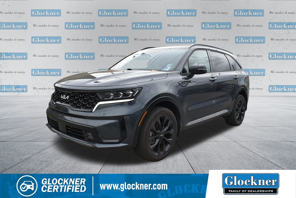 Glockner Chrysler Dodge Jeep Ram of Ashland is proud to offer this fantastic 2023 Kia Sorento in Gravity Gray. This 2023 Kia Sorento has passed our comprehensive inspection and comes with the following features; Glockner Certified Certified, AWD, 3.316 Axle Ratio, 3rd row seats: split-bench, 4-Wheel Disc Brakes, 6 Speakers, ABS brakes, Air Conditioning, Alloy wheels, AM/FM radio: SiriusXM, Apple CarPlay & Android Auto, Auto High-beam Headlights, Auto-dimming Rear-View mirror, Automatic temperature control, Brake assist, Bumpers: body-color, Cargo Net, Cross Bars, Delay-off headlights, Driver door bin, Driver vanity mirror, Dual front impact airbags, Dual front side impact airbags, Electronic Stability Control, Emergency communication system, Exterior Parking Camera Rear, Four wheel independent suspension, Front anti-roll bar, Front Bucket Seats, Front Center Armrest, Front dual zone A/C, Front fog lights, Front reading lights, Fully automatic headlights, Heated door mirrors, Heated Front Bucket Seats, Heated front seats, Illuminated entry, Knee airbag, Leather steering wheel, Low tire pressure warning, Navigation System, Occupant sensing airbag, Outside temperature display, Overhead airbag, Overhead console, Panic alarm, Passenger door bin, Passenger vanity mirror, Power door mirrors, Power driver seat, Power Liftgate, Power moonroof, Power passenger seat, Power steering, Power windows, Radio data system, Radio: AM/FM Audio System, Rain sensing wipers, Rear air conditioning, Rear anti-roll bar, Rear reading lights, Rear window defroster, Rear window wiper, Remote keyless entry, Roof rack: rails only, Security system, Smart Key w/ Push Button and Remote Start, Speed control, Speed-sensing steering, Split folding rear seat, Spoiler, Steering wheel mounted audio controls, SynTex Artificial Leather Seat Trim, Tachometer, Telescoping steering wheel, Tilt steering wheel, Traction control, Trip computer, Turn signal indicator mirrors, Variably intermittent wipers, and Wheels: 8.5J x 20" Gloss Black Alloy.