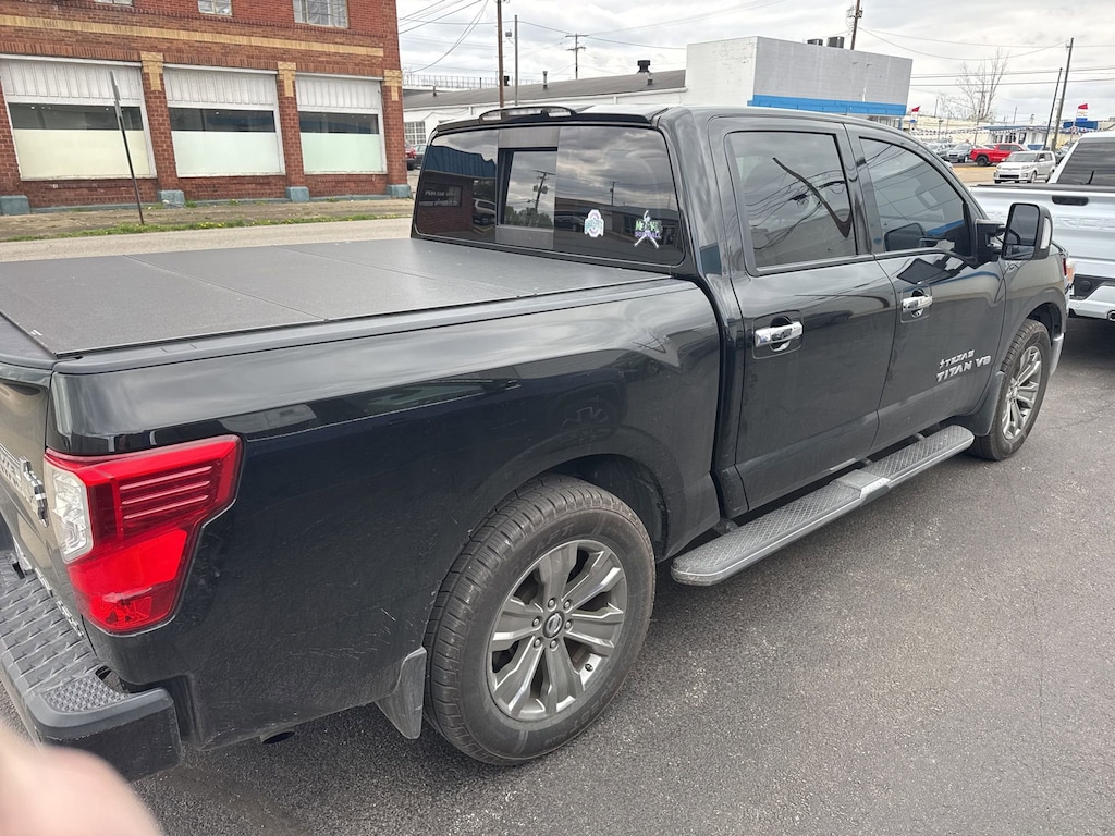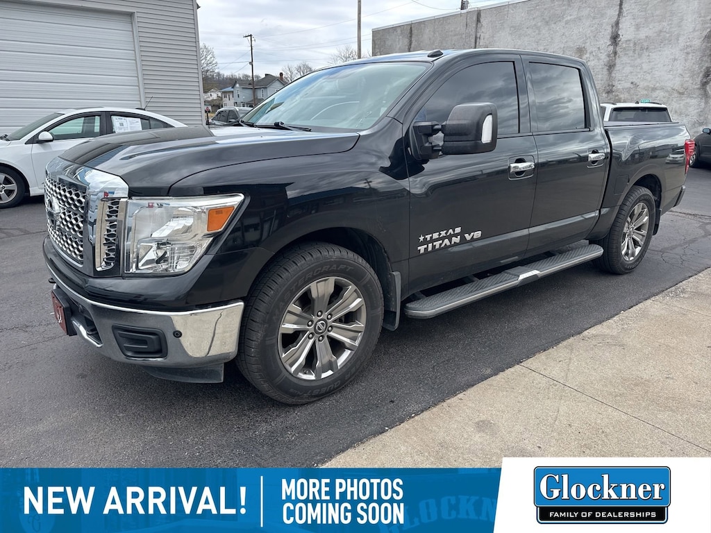 Glockner of Ironton is proud to offer this handsome 2018 Nissan Titan in Magnetic Black. This 2018 Nissan Titan has passed our comprehensive inspection and comes with the following features; SV Convenience Package (4-Pin/7-Pin Wiring Harness Connector (Rear Bumper), Auto-Dimming Rear-View Mirror, Automatic On/Off Headlights, Blind Spot Warning w/Rear Cross Traffic Alert, Chrome Interior Door Locks, Convex Spotter Mirror, Dual Zone Automatic HVAC, Front & Rear Parking Sensors, Heated Front Captain's Chairs, Intelligent Key System, Leather-Wrapped Steering Wheel, Painted Rear Bumper, Power Sliding Rear Window w/Defogger, Radio: Nissan Navigation System w/Voice Guidance, Rain Sensing Wipers, Rear Air Conditioning Vents, Receiver Hitch, Siri Eyes Free, and Universal Garage Door Opener), SV Tow Package (Manually Extending Heated Tow Mirrors w/Puddle Lamp and Trailer Brake Controller), SV Utility Package (110V Outlet in Bed, 2nd Row Flat Floor Storage Box, LED Under Rail Bed Lighting, Spray-On Bedliner, Tailgate Area Illumination, and Utilitrack System w/4 Tie-Down Cleats), Texas TITAN Edition (Chrome Exhaust Finisher, Chrome Front Grille (Inner & Outer), Metallic Kick Plates, and Texas TITAN Badging & Floor Mats (B09)), 4WD, 2.937 Axle Ratio, 4-Wheel Disc Brakes, 6 Speakers, ABS brakes, Air Conditioning, Alloy wheels, AM/FM radio: SiriusXM, Brake assist, Bumpers: chrome, CD player, Cloth Seat Trim, Driver door bin, Driver vanity mirror, Dual front impact airbags, Dual front side impact airbags, Electronic Stability Control, Electronic Tailgate Lock, Front anti-roll bar, Front Center Armrest w/Storage, Front Manual Split Bench Seat (40/20/40), Front reading lights, Front wheel independent suspension, Heated door mirrors, Illuminated entry, Leather Seat Trim, Low tire pressure warning, Occupant sensing airbag, Outside temperature display, Overhead airbag, Overhead console, Panic alarm, Passenger door bin, Passenger vanity mirror, Power door mirrors, Power steering, Power windows, Radio data system, Radio: NissanConnect AM/FM w/SiriusXM, Rear anti-roll bar, Rear seat center armrest, Rear step bumper, Rear window defroster, Remote keyless entry, Running Boards, Security system, Speed control, Speed-sensing steering, Speed-Sensitive Wipers, Splash Guards, Split folding rear seat, Steering wheel mounted audio controls, Tachometer, Telescoping steering wheel, Tilt steering wheel, TITAN Box w/Inside Bed Storage w/New Cleat, Traction control, Trip computer, Turn signal indicator mirrors, Variably intermittent wipers, Voltmeter, and Wheels: 18 x 8 Silver Painted Alloy.4WD.