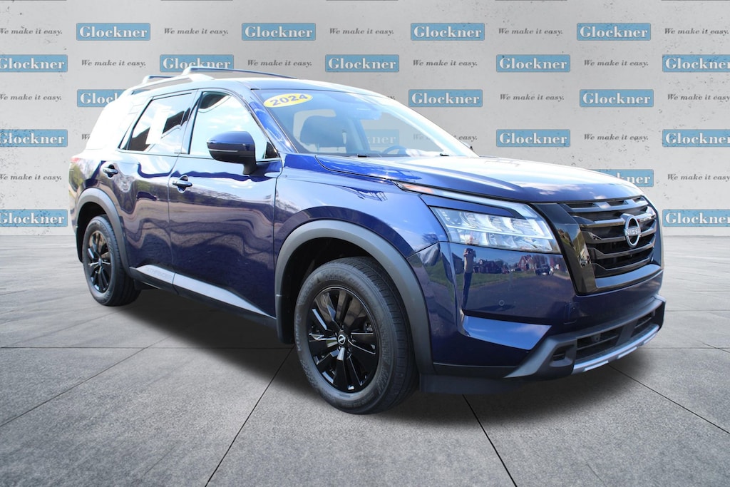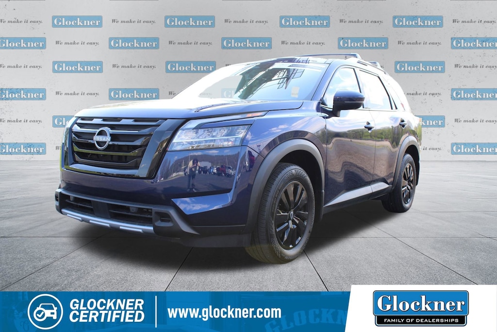 Glockner Chevrolet is proud to offer this great-looking 2024 Nissan Pathfinder in Deep Ocean Blue Pearl. This 2024 Nissan Pathfinder has passed our comprehensive inspection and comes with the following features; Cargo Package (Cargo Area Protector, Cargo Net, and First Aid Kit), Glockner Certified Certified, 4WD, Navigation system: NissanConnect with Navigation and Services, Power Liftgate, 3rd row seats: bench, 4-Wheel Disc Brakes, 6 Speakers, ABS brakes, Air Conditioning, Alloy wheels, AM/FM radio: SiriusXM, Auto High-beam Headlights, Auto-dimming Rear-View mirror, Automatic temperature control, Axle Ratio: 4.334, Bench Seat Carpeted Floor Mats (Set of 4), Black Splash Guards (Set of 4), Brake assist, Bumpers: body-color, Cross Bars, Delay-off headlights, Driver door bin, Driver vanity mirror, Dual front impact airbags, Dual front side impact airbags, Electronic Stability Control, Emergency communication system, Exterior Parking Camera Rear, Four wheel independent suspension, Front anti-roll bar, Front Bucket Seats, Front Center Armrest, Front dual zone A/C, Front reading lights, Fully automatic headlights, Garage door transmitter: HomeLink, Heated door mirrors, Heated Front Bucket Seats, Heated front seats, Heated steering wheel, Illuminated entry, Knee airbag, Leather steering wheel, Leather-Appointed Seating Surfaces, Low tire pressure warning, NissanConnect featuring Apple CarPlay and Android Auto, NissanConnect w/Navigation & Services, Occupant sensing airbag, Outside temperature display, Overhead airbag, Overhead console, Panic alarm, Passenger door bin, Passenger vanity mirror, Power door mirrors, Power driver seat, Power passenger seat, Power steering, Power windows, Radio data system, Radio: AM/FM Audio System, Rear air conditioning, Rear anti-roll bar, Rear reading lights, Rear seat center armrest, Rear side impact airbag, Rear window defroster, Rear window wiper, Reclining 3rd row seat, Remote keyless entry, Security system, Speed control, Speed-sensing steering, Split folding rear seat, Spoiler, Steering wheel mounted audio controls, Tachometer, Telescoping steering wheel, Tilt steering wheel, Traction control, Trip computer, Turn signal indicator mirrors, Variably intermittent wipers, and Wheels: 18 x 8J Machined Alloy.
