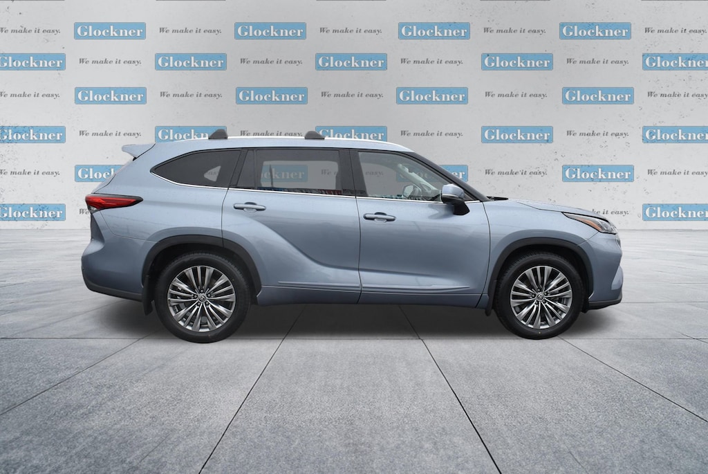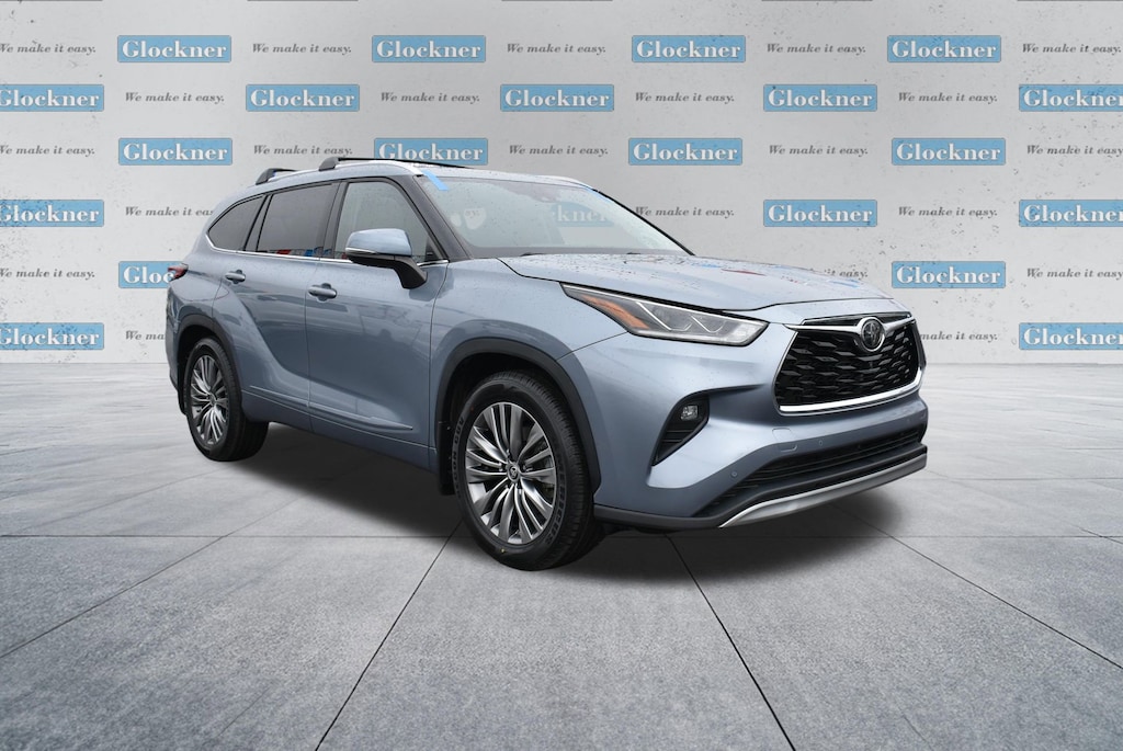 Glockner of Ironton is proud to offer this terrific 2021 Toyota Highlander in Moon Dust. This 2021 Toyota Highlander has passed our comprehensive inspection and comes with the following features; AWD, 11 Speakers, 20 Painted Alloy Wheels, 3.003 Axle Ratio, 3rd row seats: split-bench, 4-Wheel Disc Brakes, ABS brakes, Air Conditioning, Alloy wheels, AM/FM radio: SiriusXM, Apple CarPlay/Android Auto, Auto High-beam Headlights, Auto-dimming Rear-View mirror, Automatic temperature control, Brake assist, Bumpers: body-color, Delay-off headlights, Digital Rearview Mirror w/HomeLink, Driver door bin, Driver vanity mirror, Dual front impact airbags, Dual front side impact airbags, Electronic Stability Control, Emergency communication system: Safety Connect with 1-year trial, Four wheel independent suspension, Front anti-roll bar, Front Bucket Seats, Front Center Armrest, Front dual zone A/C, Front fog lights, Front reading lights, Fully automatic headlights, Garage door transmitter: HomeLink, Heads-Up Display, Heated door mirrors, Heated front seats, Heated rear seats, Heated steering wheel, Heated/Ventilated Front Bucket Seats, High Grade LED Projector Headlights, Illuminated entry, Knee airbag, Leather Seat Trim, Leather Shift Knob, Low tire pressure warning, Memory seat, Navigation system: Dynamic Navigation (3-year trial), Occupant sensing airbag, Outside temperature display, Overhead airbag, Overhead console, Panic alarm, Panoramic Moonroof, Panoramic View Monitor, Passenger door bin, Passenger vanity mirror, Power door mirrors, Power driver seat, Power Liftgate, Power moonroof, Power passenger seat, Power steering, Power windows, Radio: Premium Audio w/JBL Clari-Fi, Rain sensing wipers, Rear air conditioning, Rear anti-roll bar, Rear reading lights, Rear window defroster, Rear window wiper, Reclining 3rd row seat, Remote keyless entry, Roof rack: rails only, Security system, Speed control, Speed-sensing steering, Split folding rear seat, Spoiler, Steering wheel mounted audio controls, Tachometer, Telescoping steering wheel, Tilt steering wheel, Traction control, Trip computer, Turn signal indicator mirrors, Variably intermittent wipers, and Ventilated front seats.